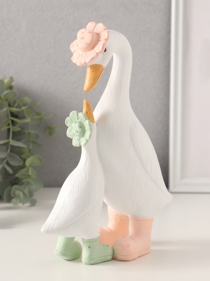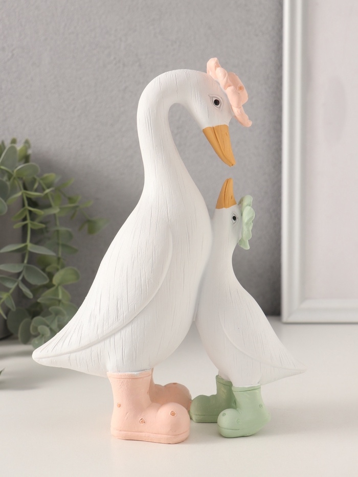 Сувенир полистоун "Утка с малышом в резиновых сапогах" 16х6,5х21 см