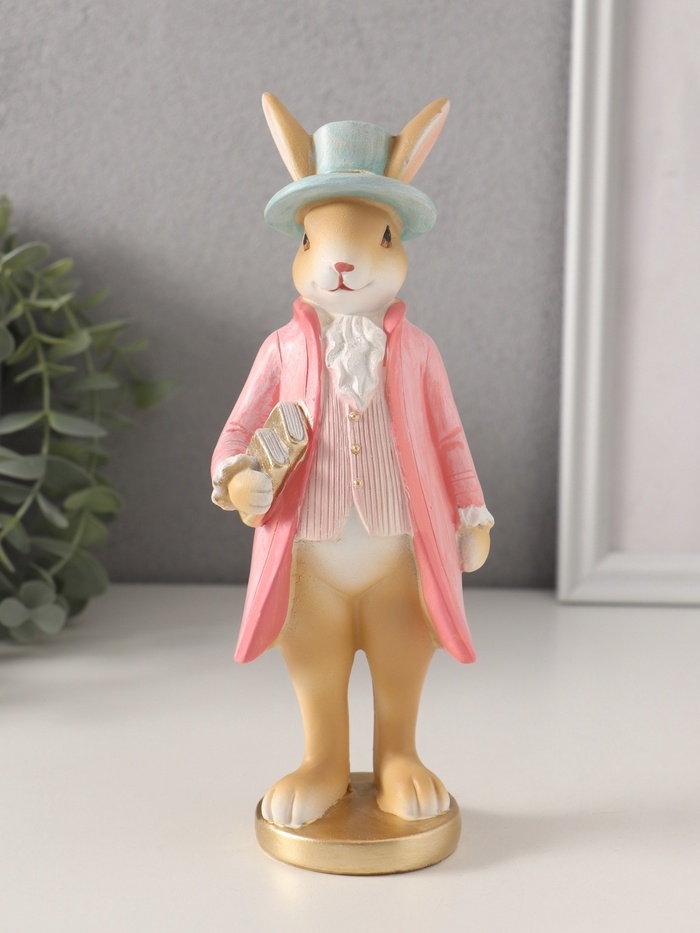Сувенир полистоун "Заяц в розовом камзоле и голубой шляпе" 7,5х6х20,5 см