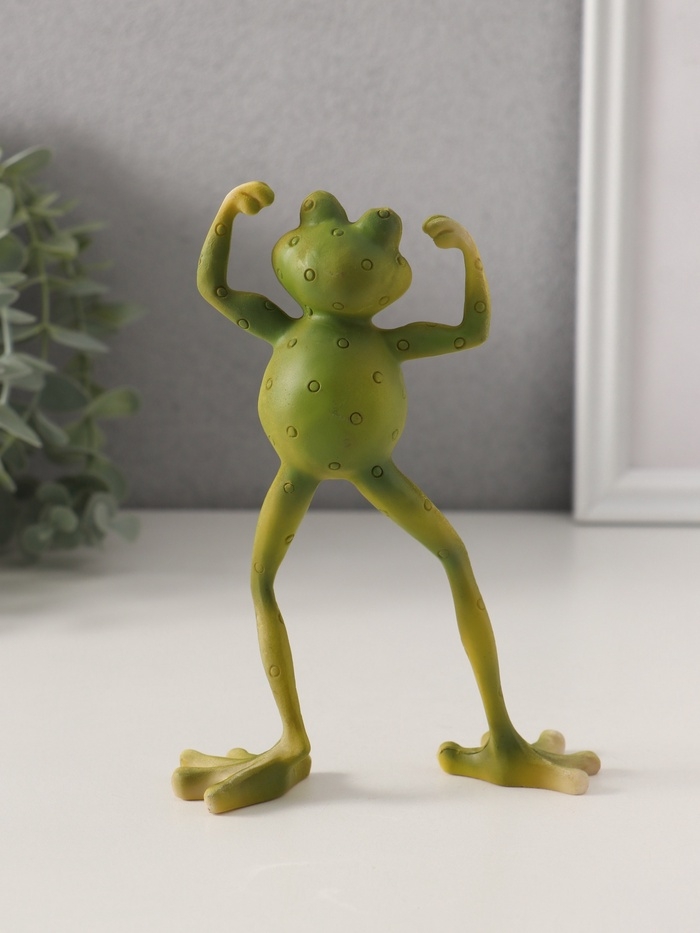 Сувенир полистоун "Лягушонок-силач, с цветами на животике" 11,5х3,5х16 см