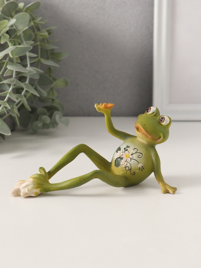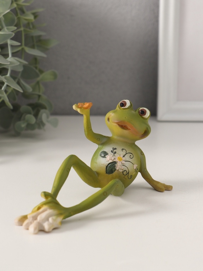 Сувенир полистоун "Лягушонок - смотри, что у меня есть" 15,5х6х7 см