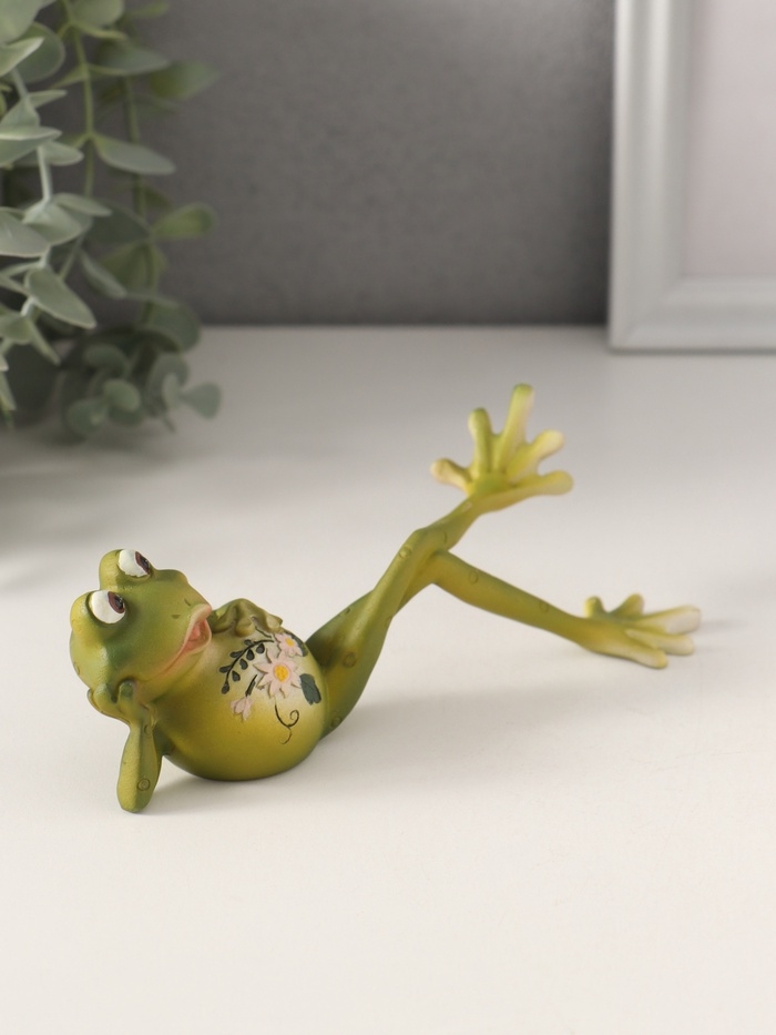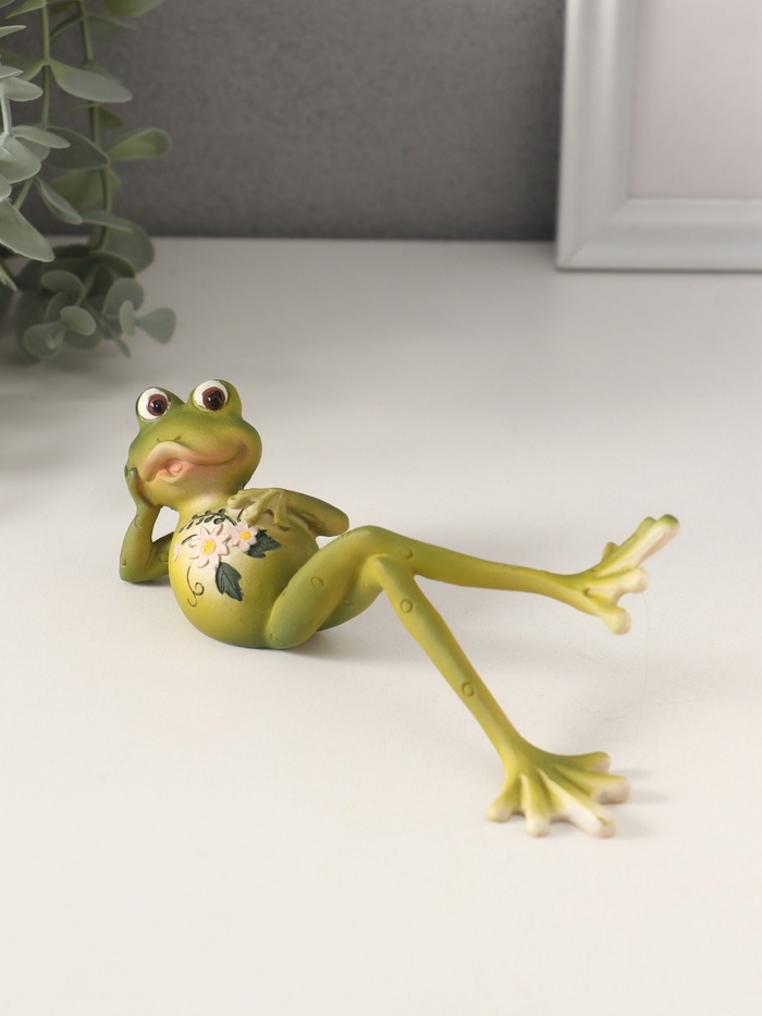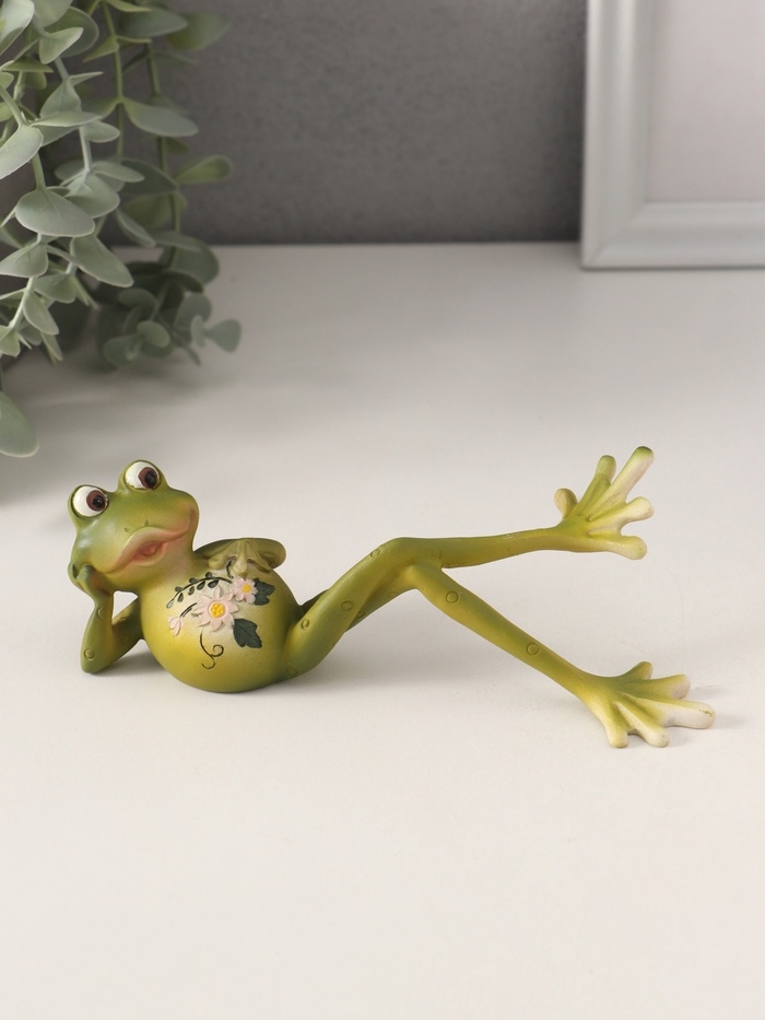 Сувенир полистоун "Лягушонок на отдыхе, с цветами на животике" 15,5х6х7 см