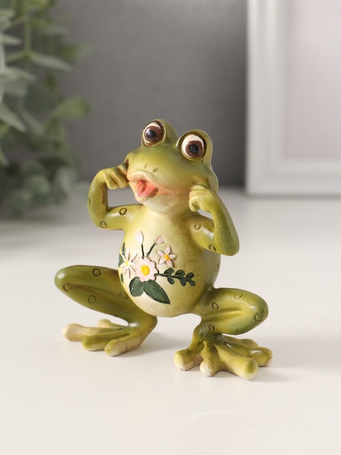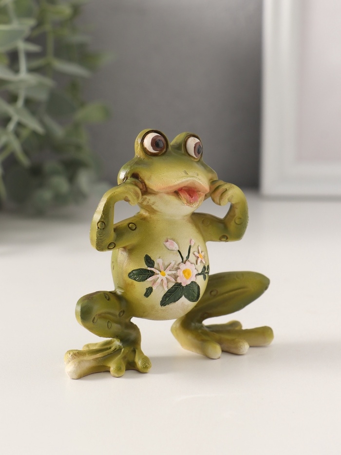 Сувенир полистоун "Лягушонок строит рожицы, с цветами на животике" 10,5х4х8,5 см