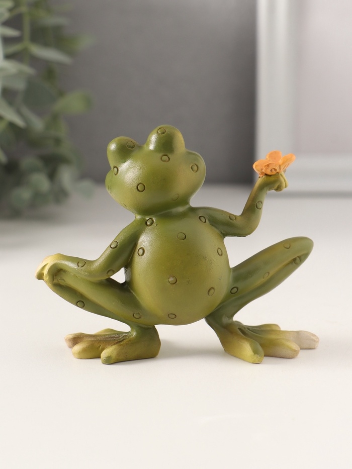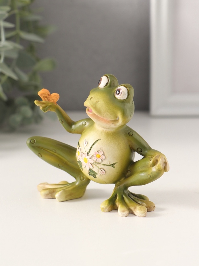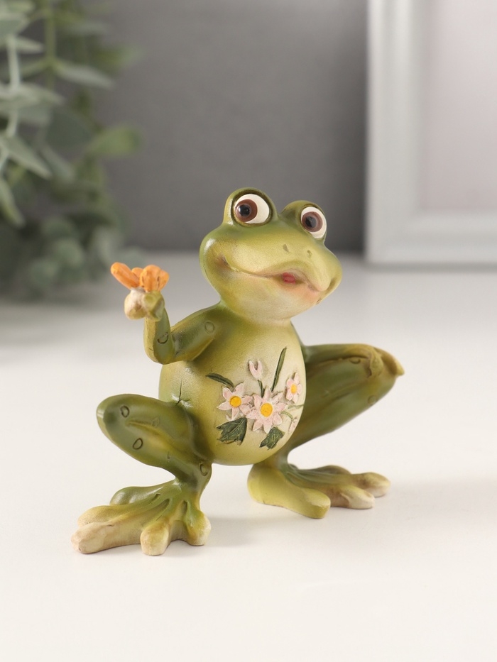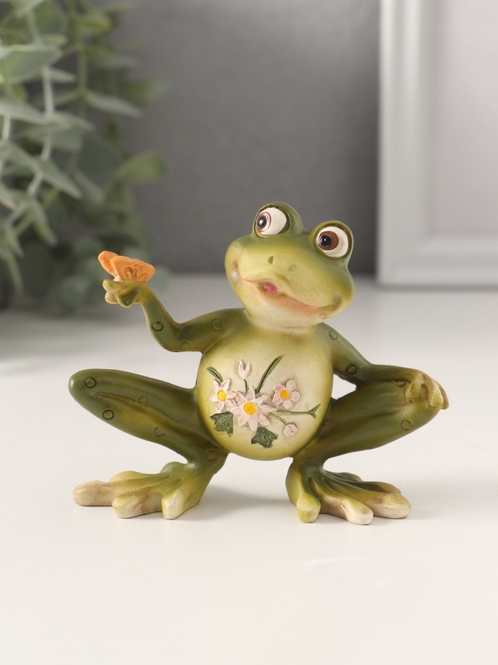 Сувенир полистоун "Лягушонок с бабочкой, с цветами на животике" 10,5х4х8,5 см