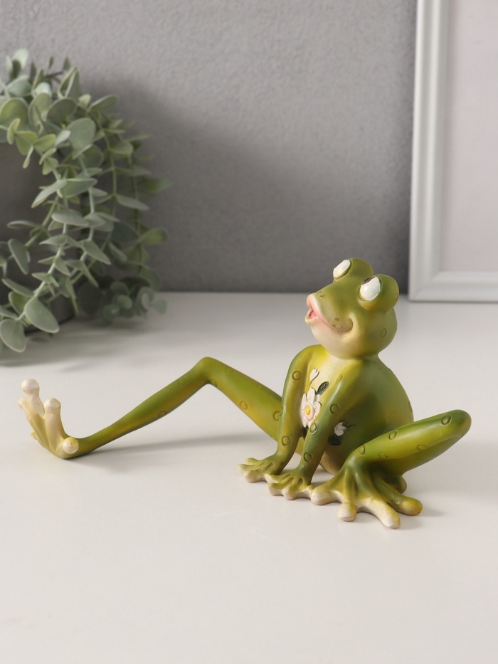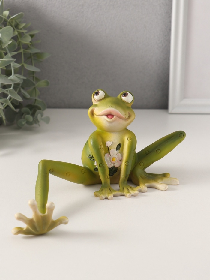 Сувенир полистоун "Лягушонок строит глазки, с цветами на животике" 22х9х10,5 см