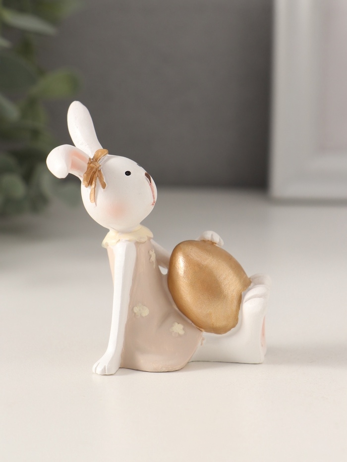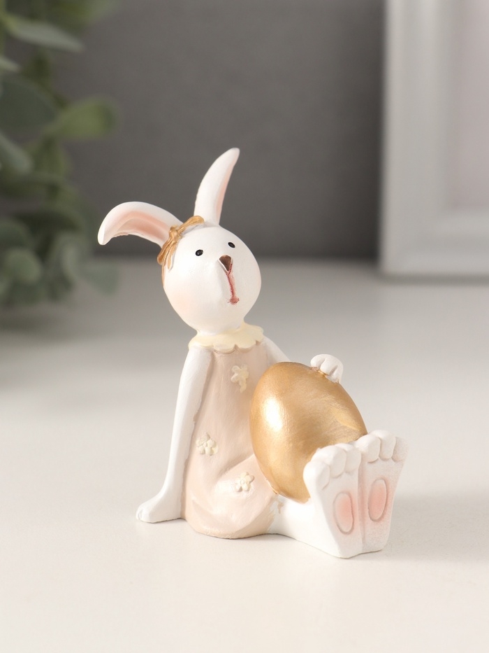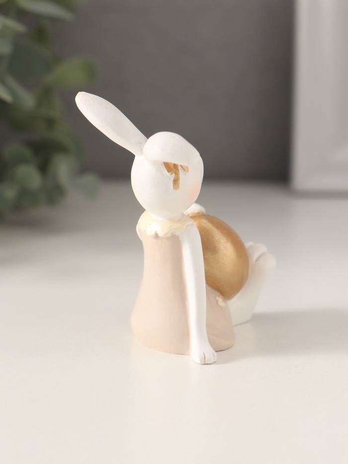 Сувенир полистоун "Белая зайка в бежевом платье, с золотым яичком" 8х4,5х7 см