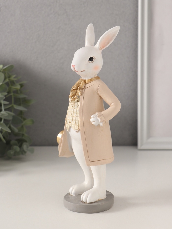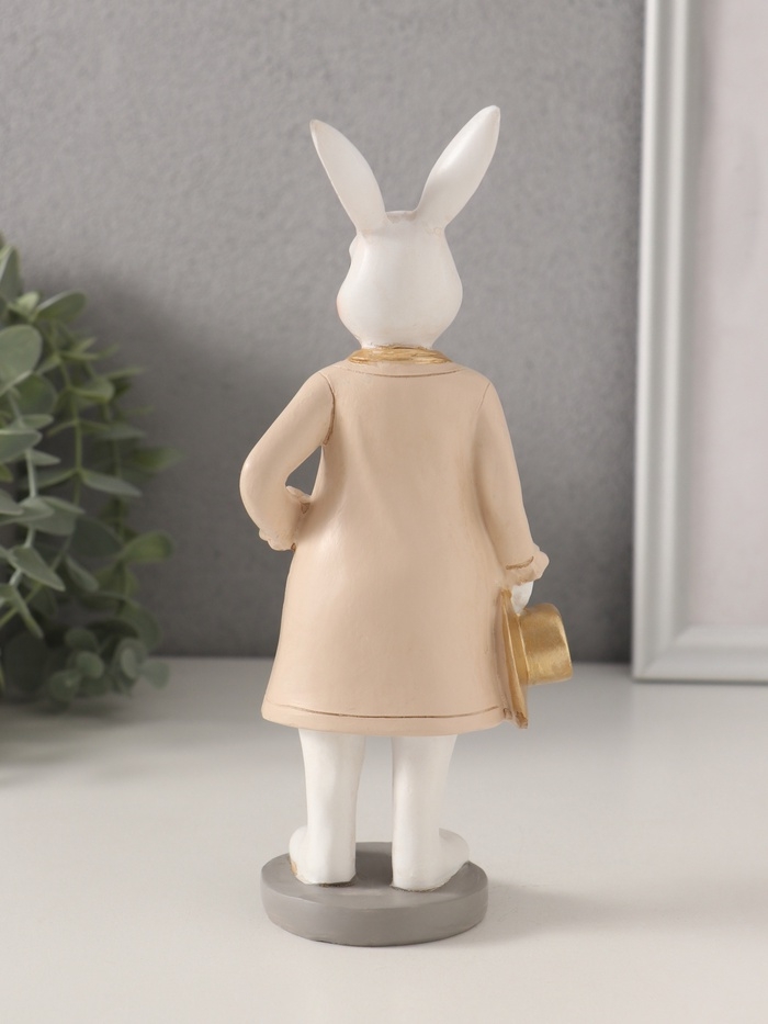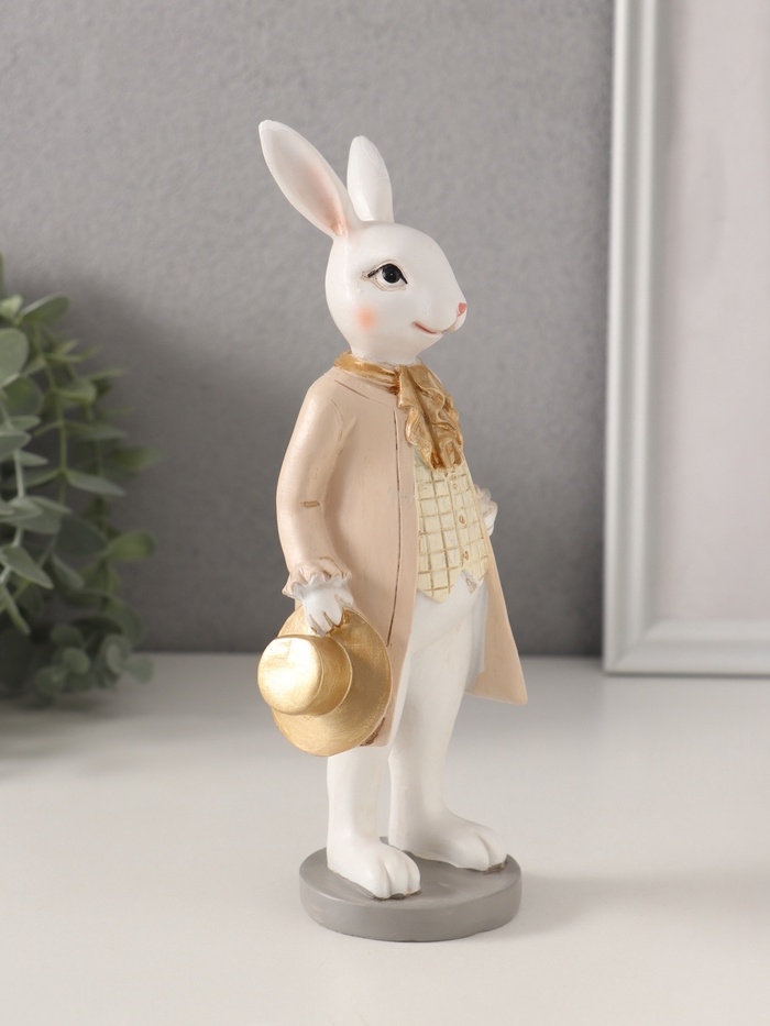 Сувенир полистоун "Белый кролик с золотым цилиндром и жабо" 8,5х6х20 см