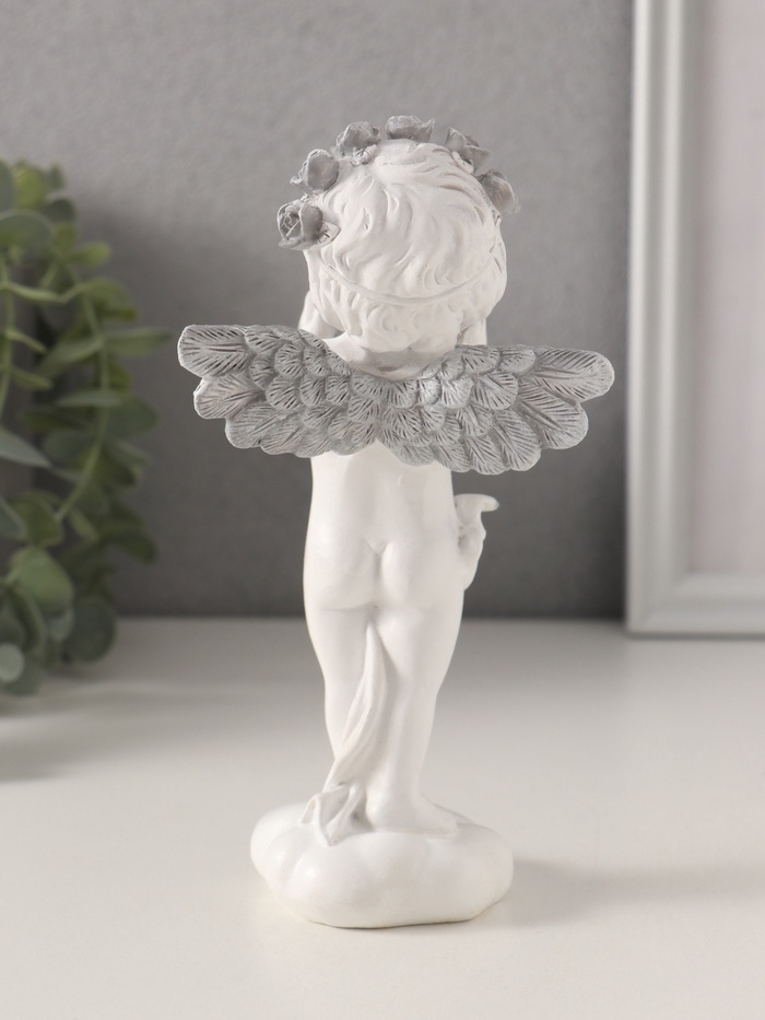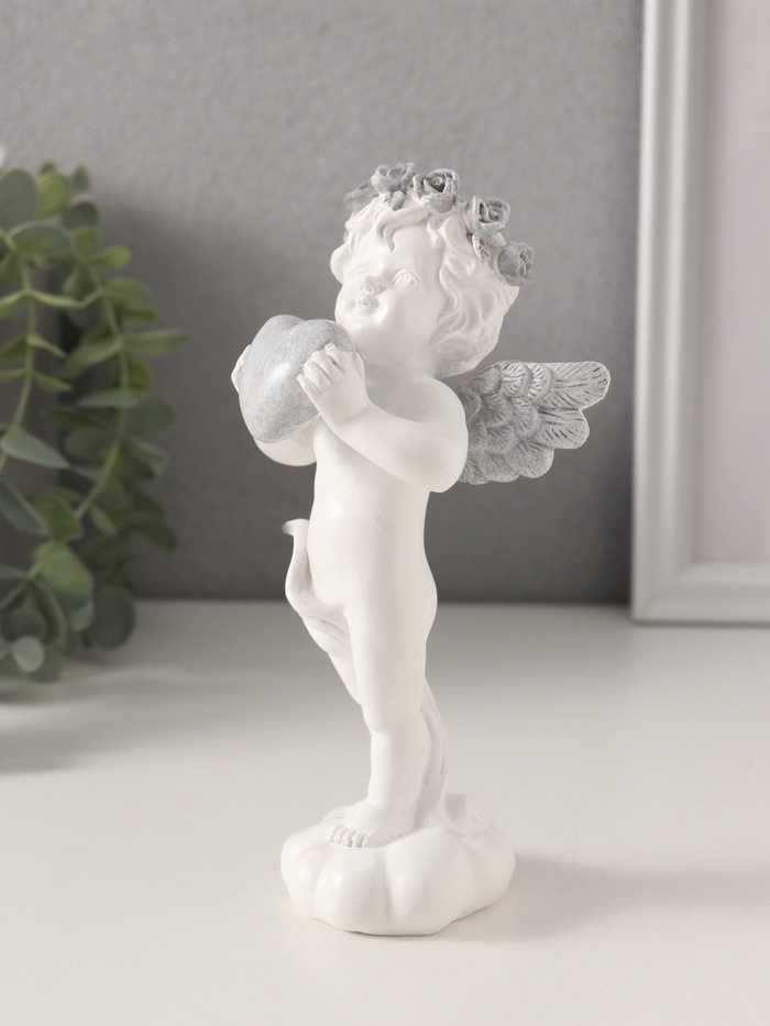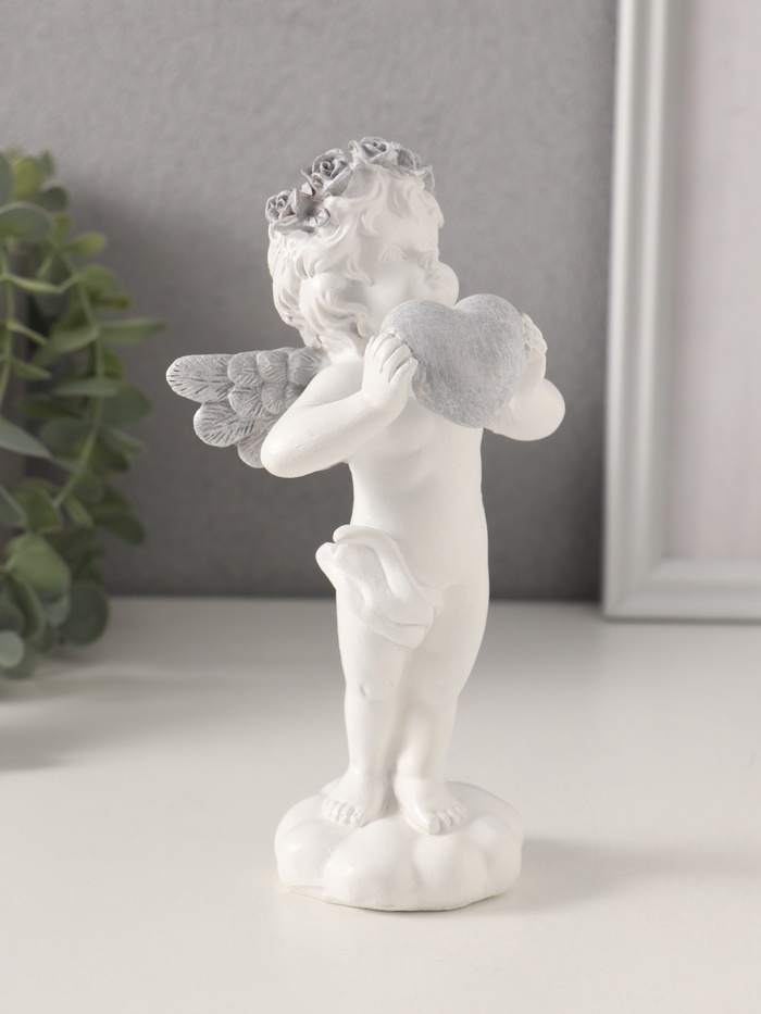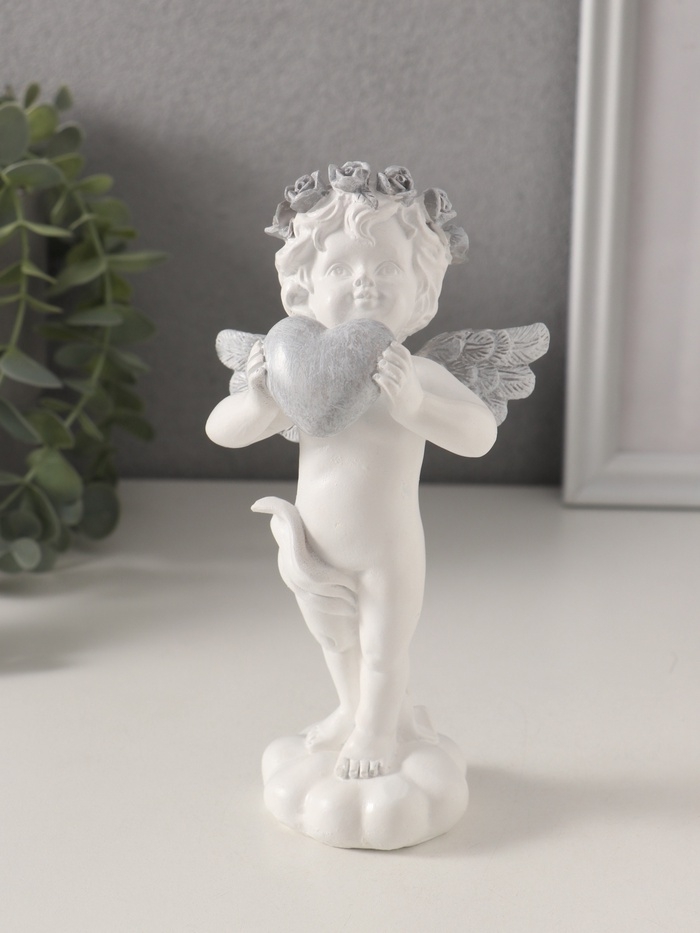 Сувенир полистоун "Ангелочек с сердцем в руках, с венком в волосах" 8,5х7х16,5 см