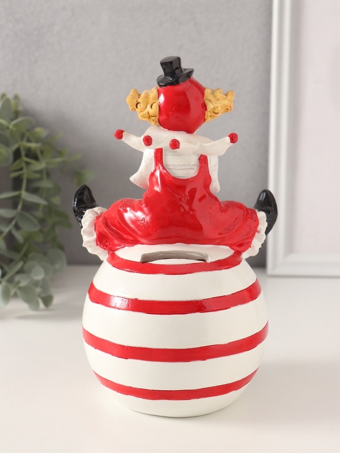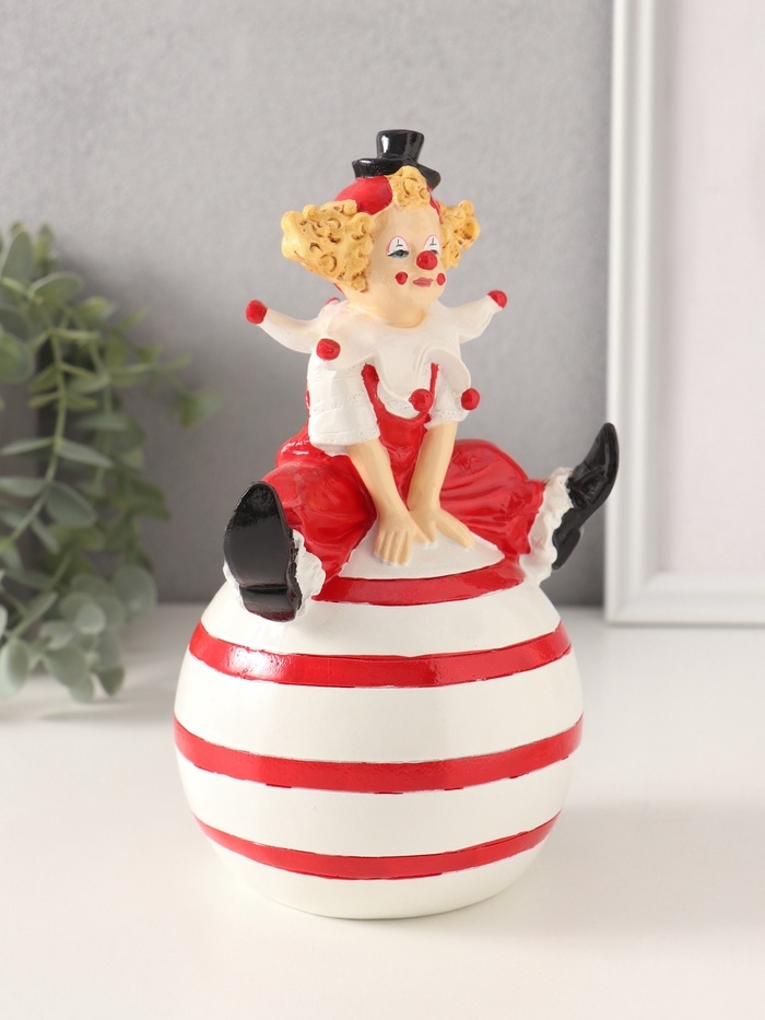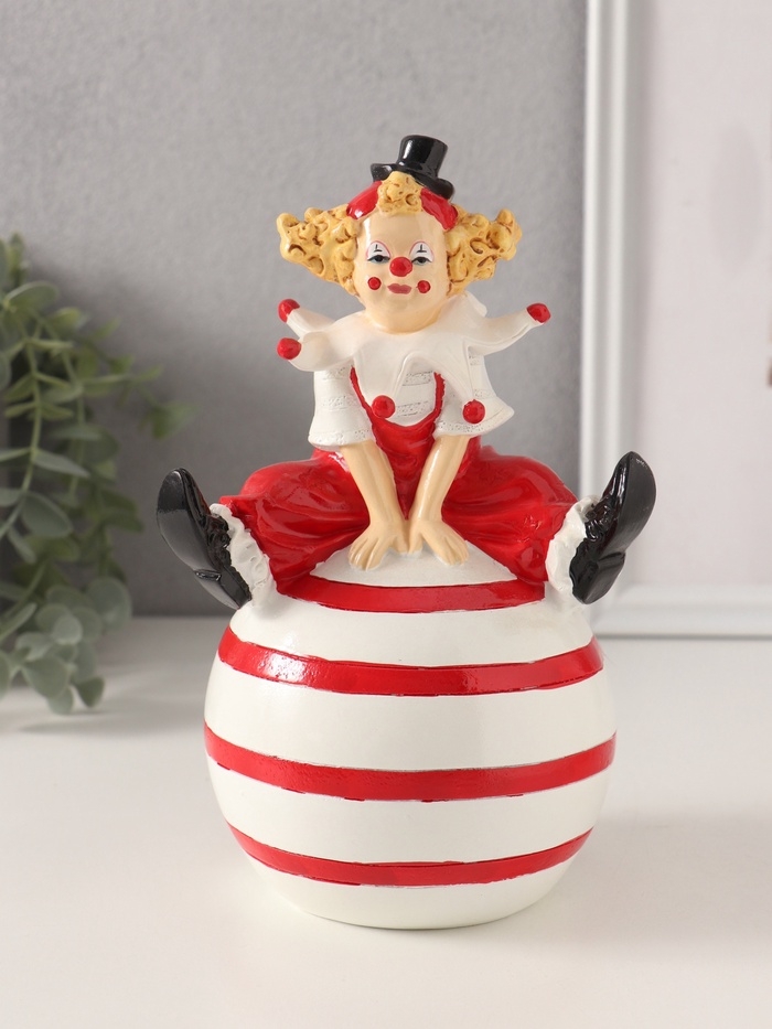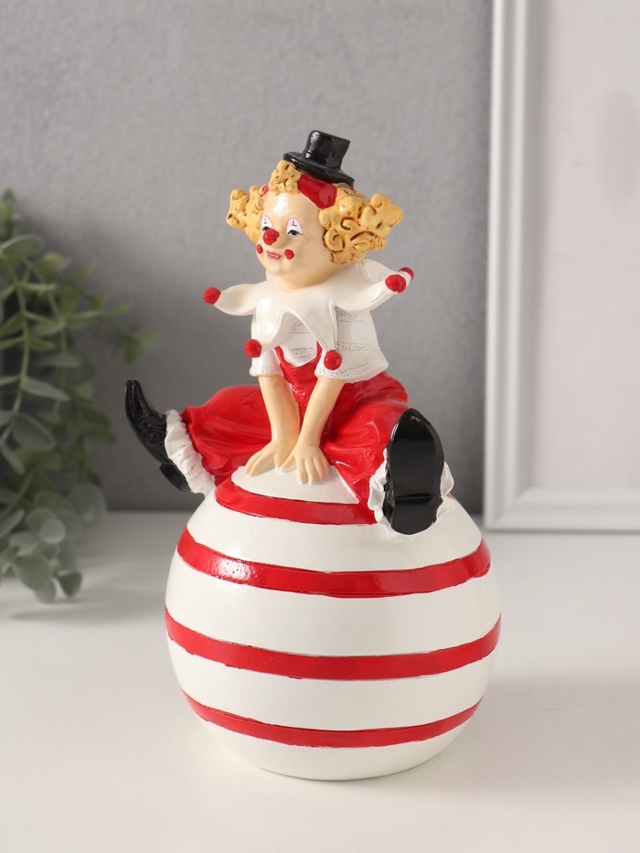 Копилка полистоун "Клоун в цилиндре, на надувном мяче" красно-белый 12,5х11х20,5 см