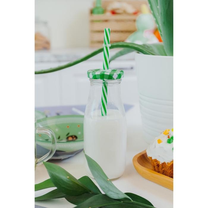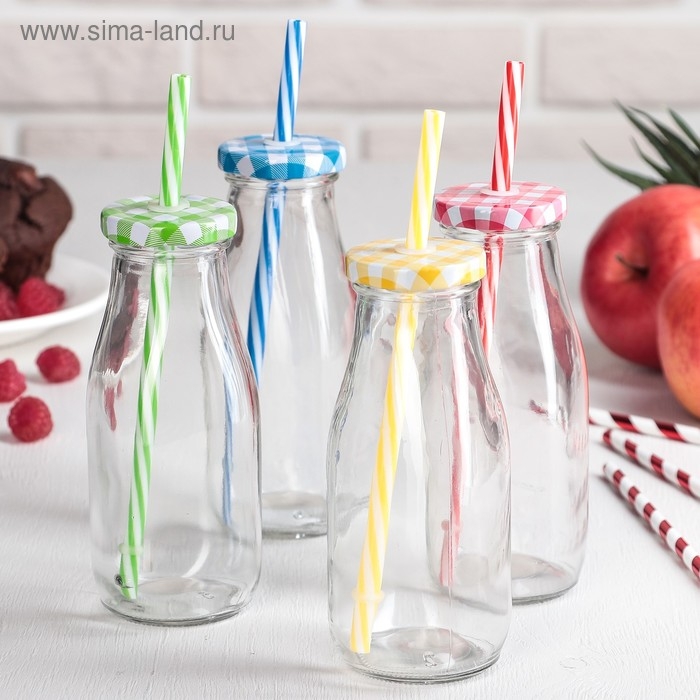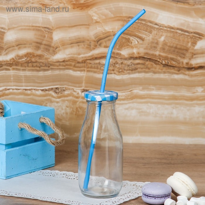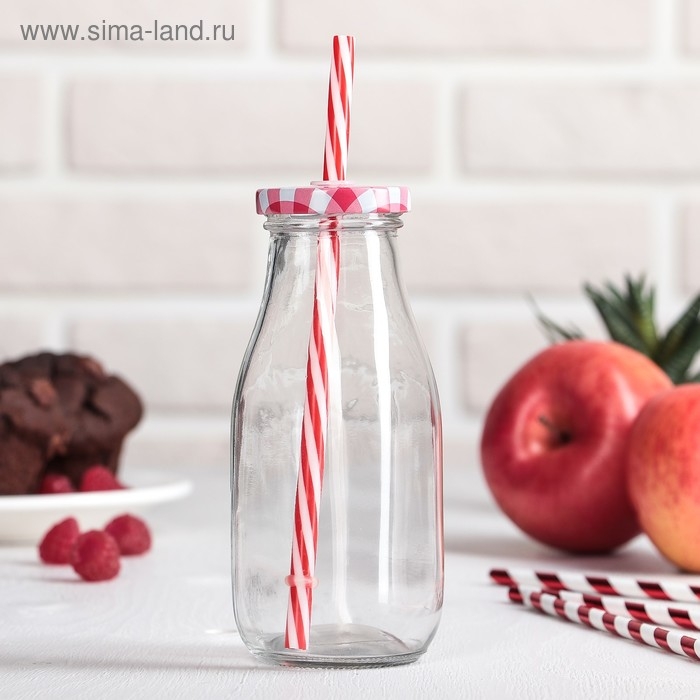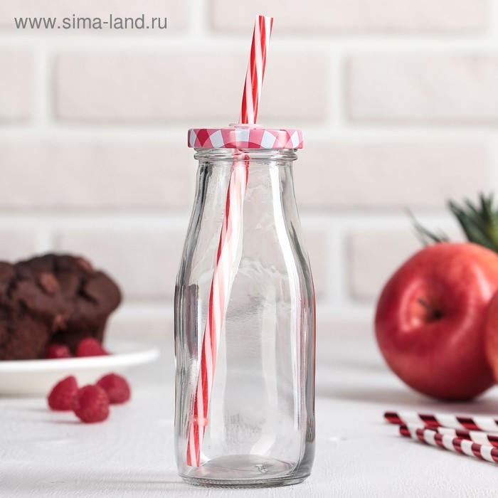 Бутыль стеклянная с крышкой и трубочкой «Лаконичность», 300 мл, 6,5×15,5 см, цвет МИКС