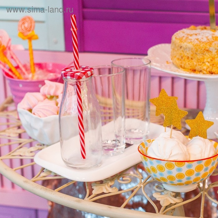 Бутыль стеклянная с крышкой и трубочкой, 200 мл, 7,5×6×14,5 см, цвет МИКС