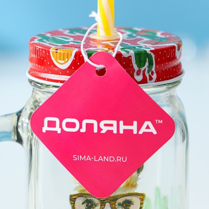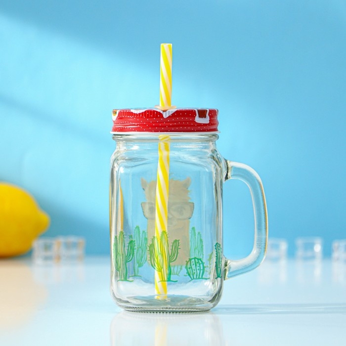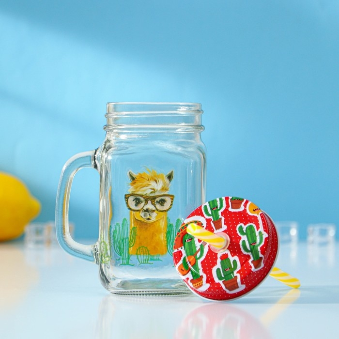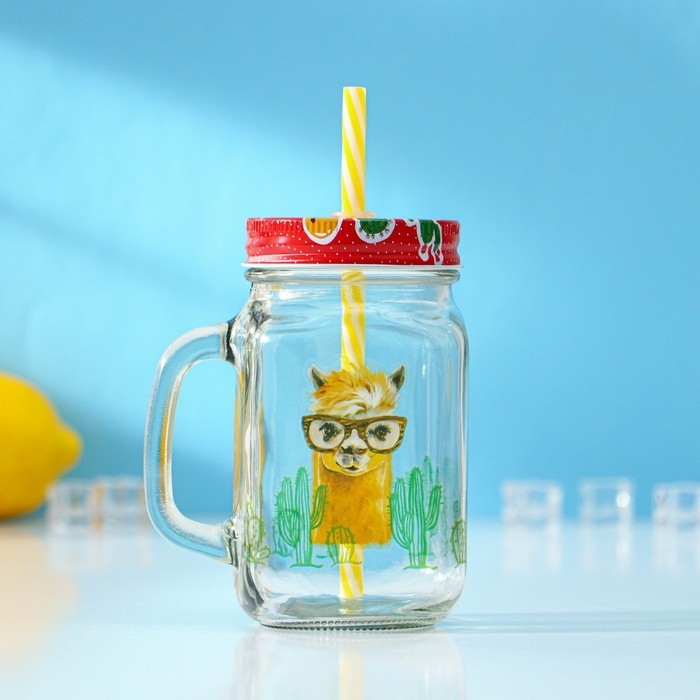 Банка стеклянная с крышкой и трубочкой Доляна «Лама», 450 мл, 10×7,5×13 см