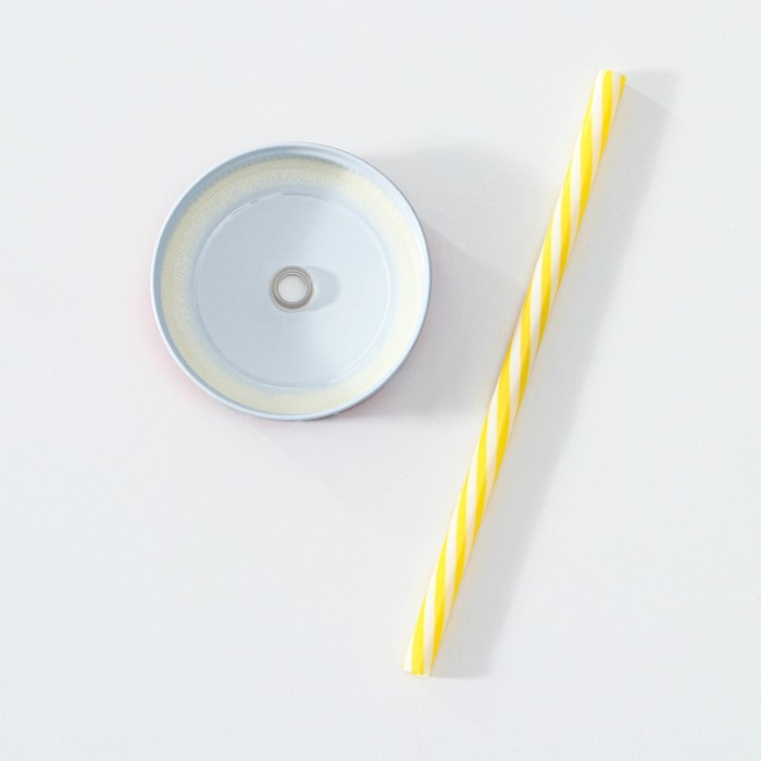 Набор кружек стеклянных Доляна «Яркий лимонад», 2 предмета: 2 кружки с крышками и трубочками 450 мл