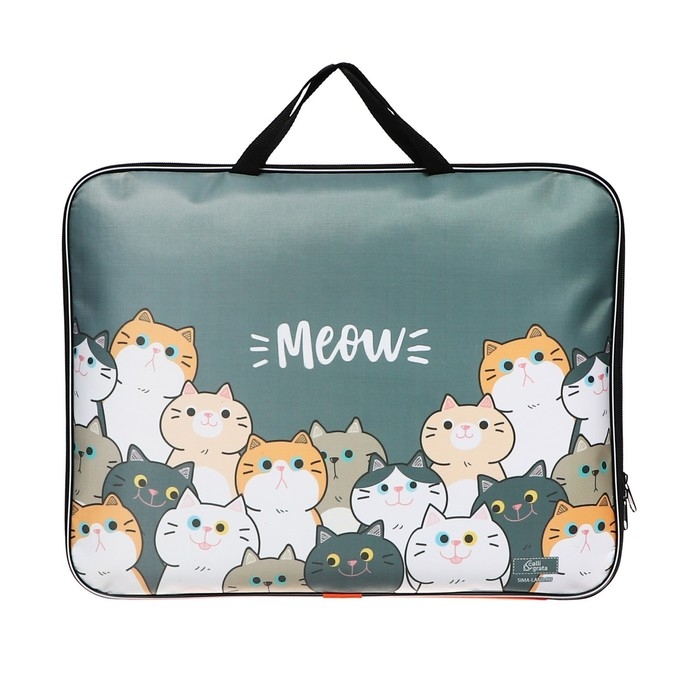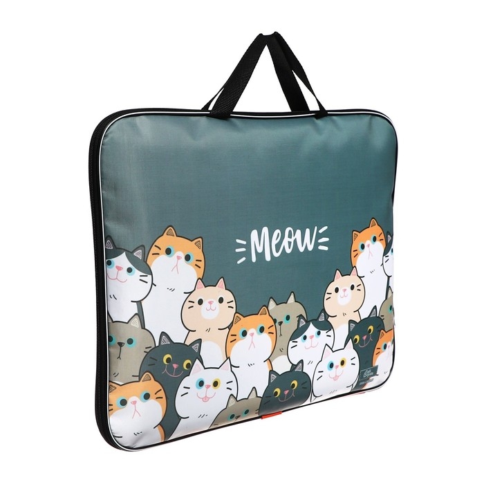 Папка для чертежей и рисунков А3, 470 х 350 х 20 мм, с ручками, текстильная, Calligrata "Коты"