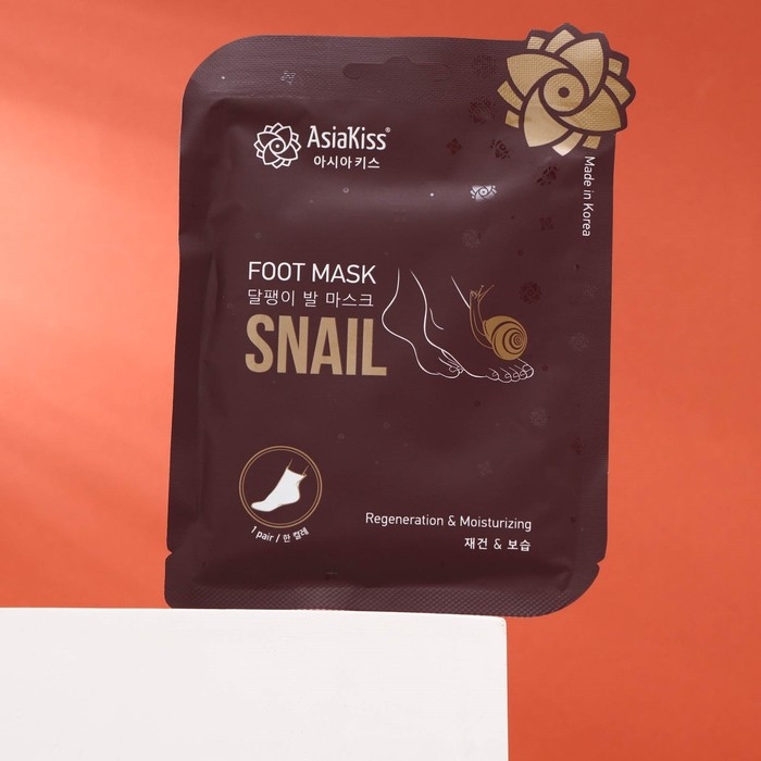Интенсивно-восстанавливающая маска-носки "AsiaKiss" для ног, «Улитка», 1 пара