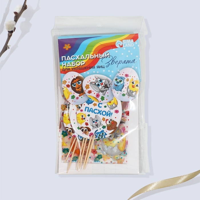 Пасхальный набор для украшения яиц с карточками «Зверята», 9 х 16 см.