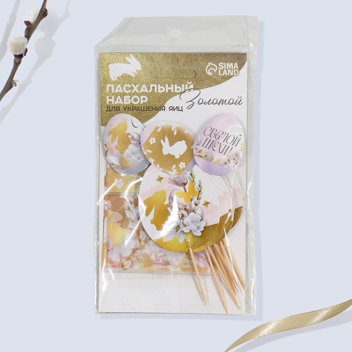 Набор для украшения яиц с карточками «Золотой» на пасху, 9 х 16 см