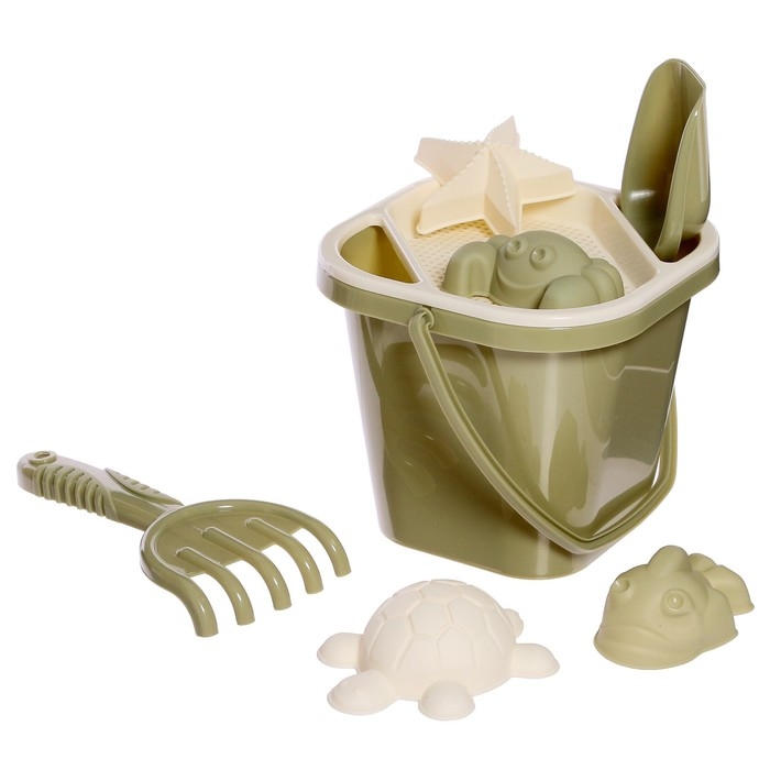 Песочный набор «Полынь», 8 предметов: совок, грабли, сито, ведерко, 4 формочки