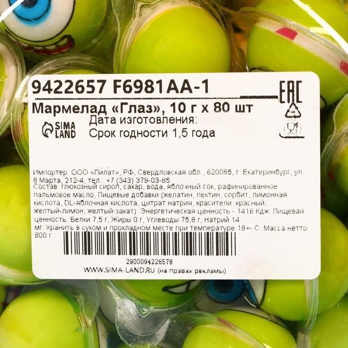 НАБОР Мармеладные глаза "Чаф-Чаф" с начинкой, 400 г