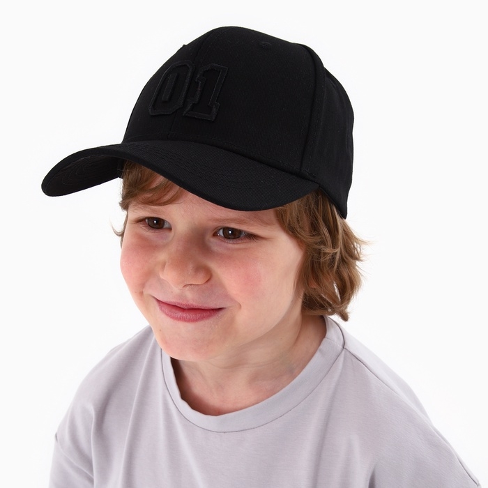 Кепка детская для мальчика «01», цвет чёрный, р-р 52-54, 5-7 лет