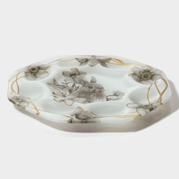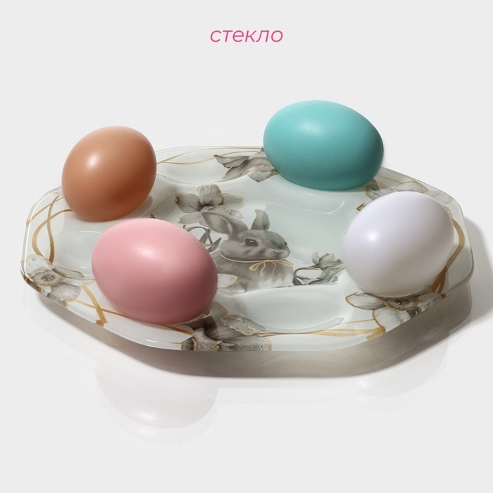 Подставка стеклянная для яиц Доляна «Кролик», 8 ячеек, 22×22 см