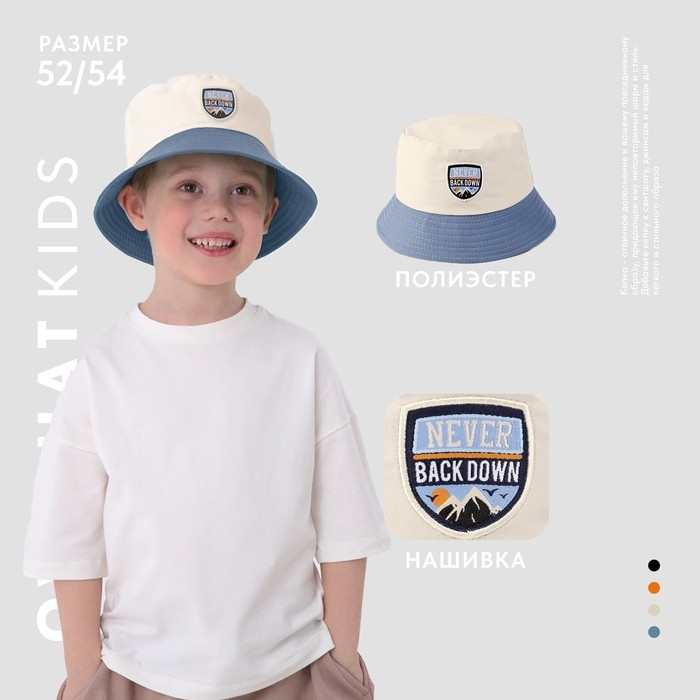 Панама детская для мальчика Never backdown, цвет бежевый, р-р 54