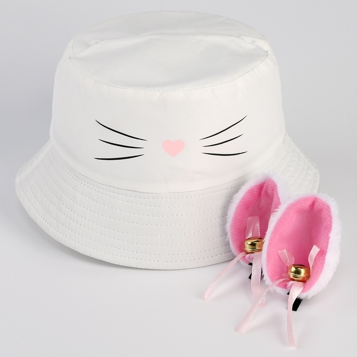 Панама детская для девочки «Кошка», + ушки-заколки, р-р 54
