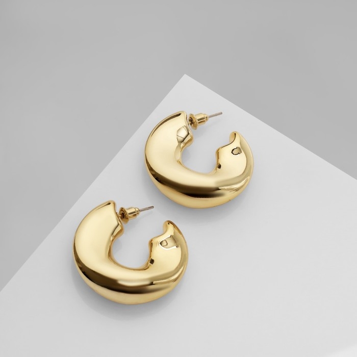 Серьги-кольца «Тренд» мятые, круг, цвет золото