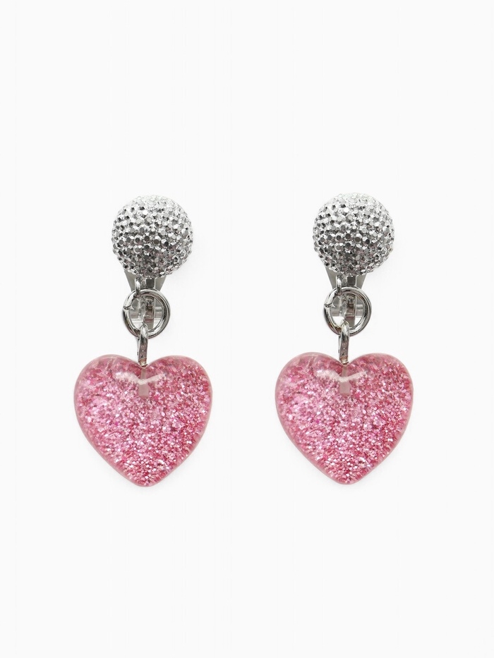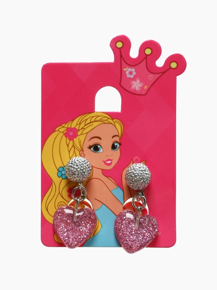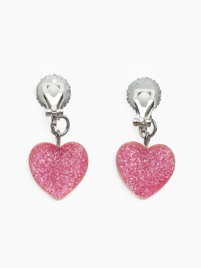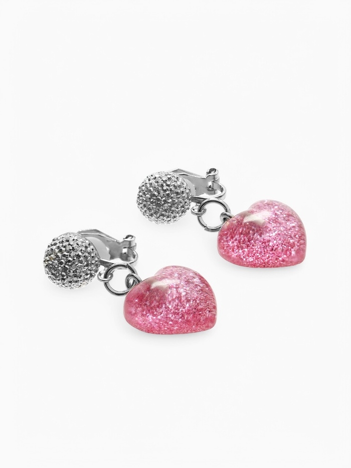 Серьги-клипсы детские "Выбражулька" сердце блестки с кругом кристалл, цвет розово-белый