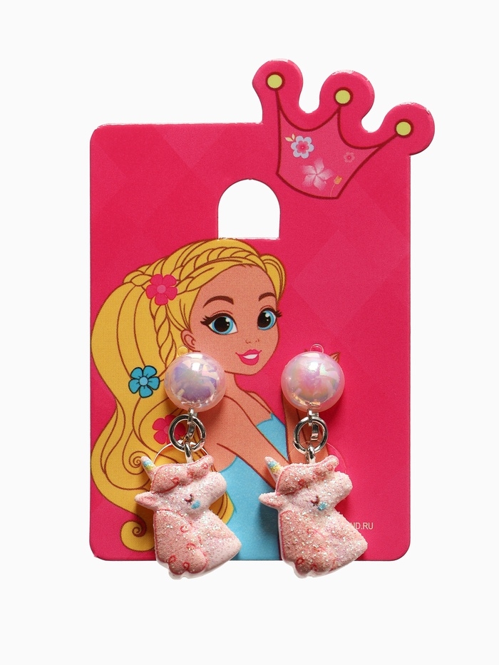 Серьги-клипсы детские "Выбражулька" единорог с жемчужиной, цвет розово-белый