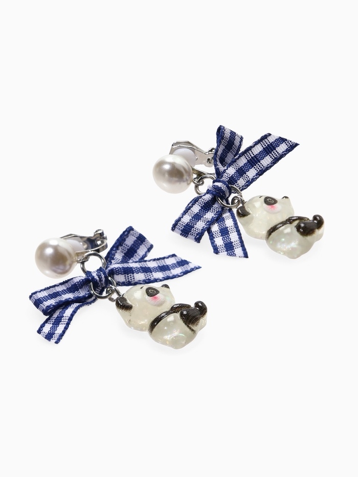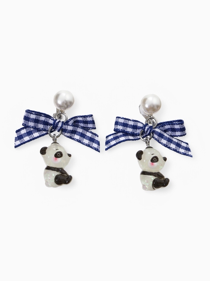 Серьги-клипсы детские "Выбражулька" панда с бантом клетка и жемчужиной, цветные