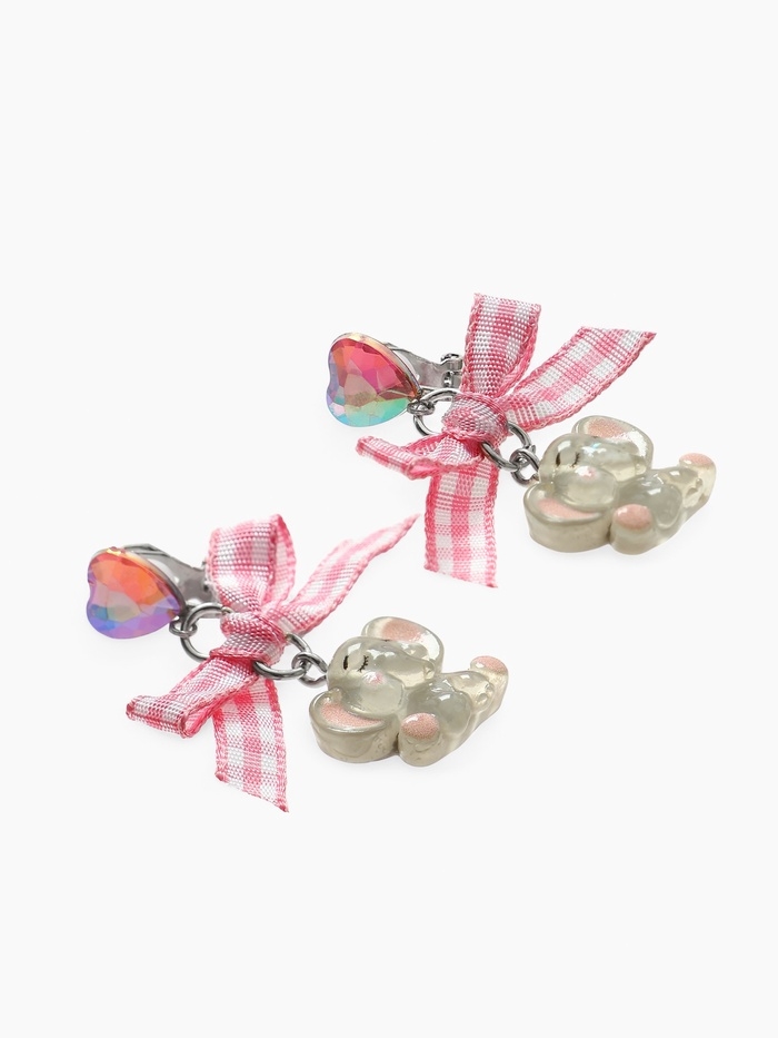 Серьги-клипсы детские "Выбражулька" Слон с бантом клетка и кристалом сердце, цветные
