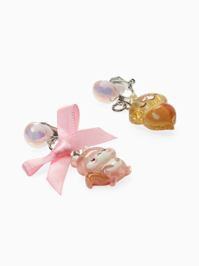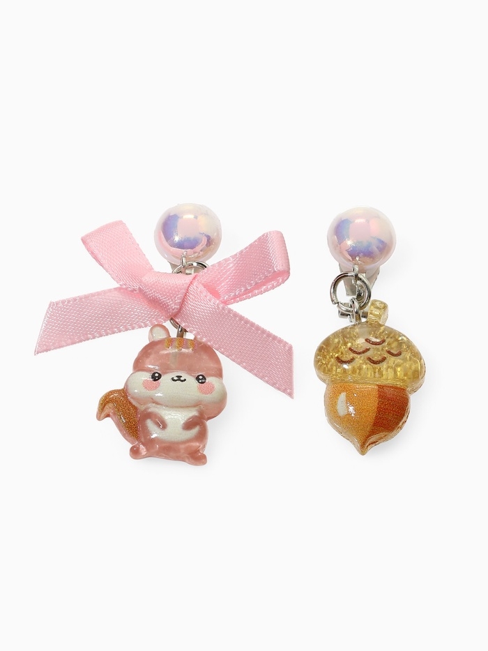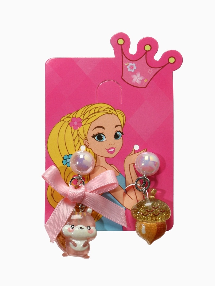 Серьги-клипсы детские "Выбражулька" белочка с бантом, жёлудь с жемчужиной, цветные