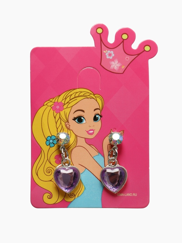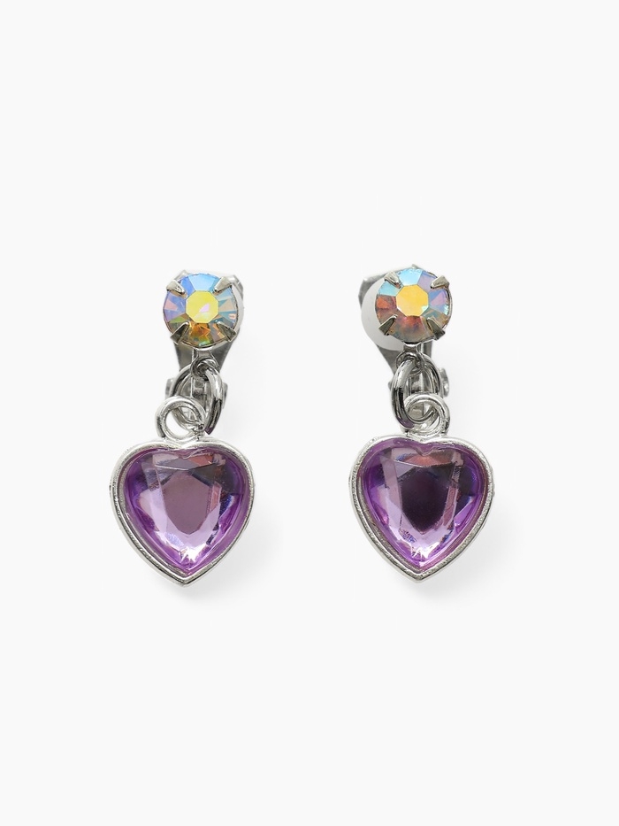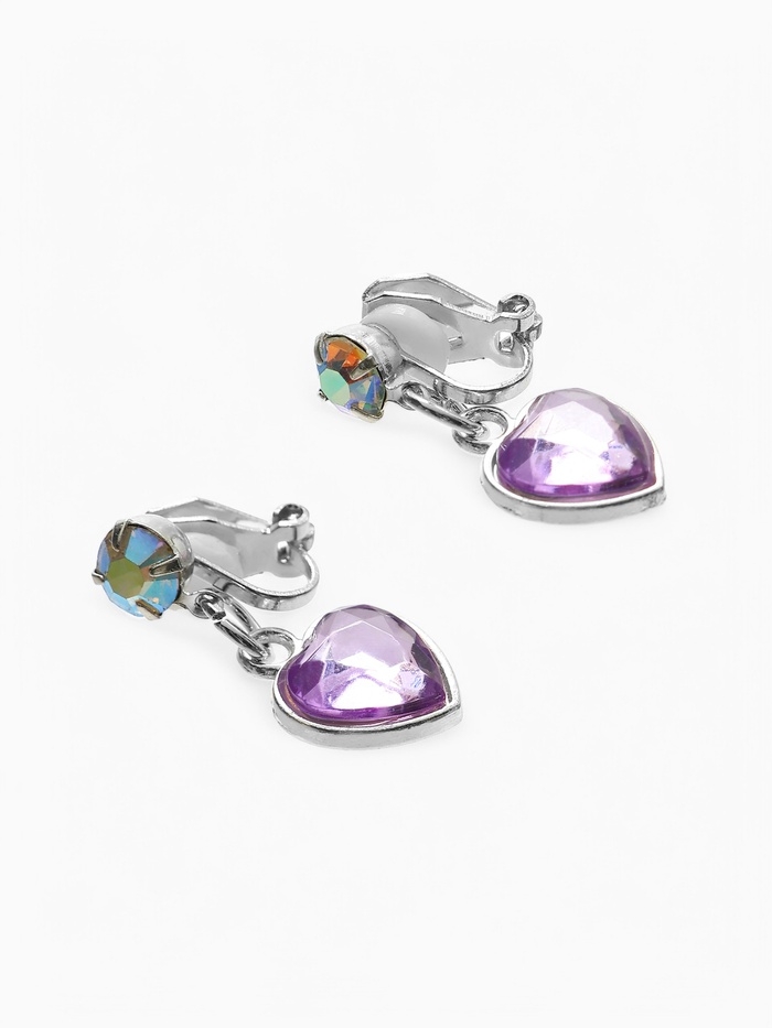 Серьги-клипсы детские "Выбражулька" сердце кристалл, цвет сиренево-радужный