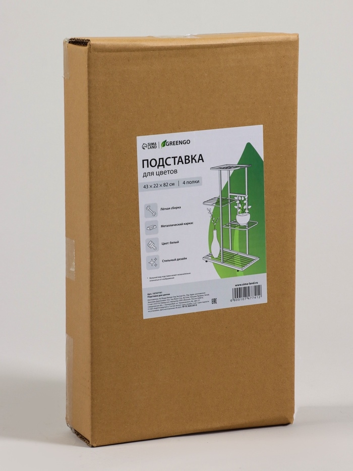 Подставка для цветов Greengo, 4 полки, 43 × 22 × 82 см, напольная, металл, белая