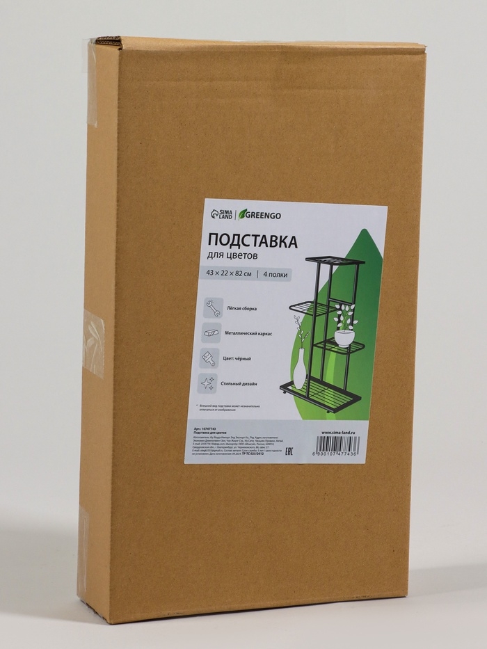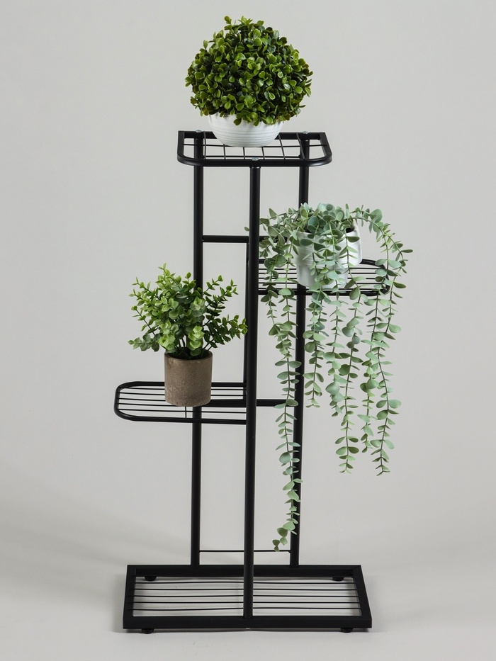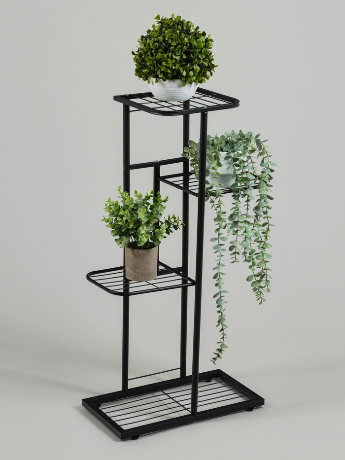 Подставка для цветов Greengo, 4 полки, 43 × 22 × 82 см, напольная, металл, чёрная