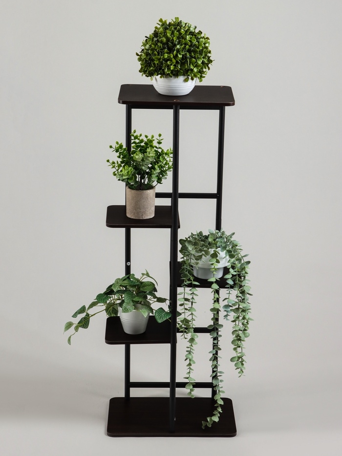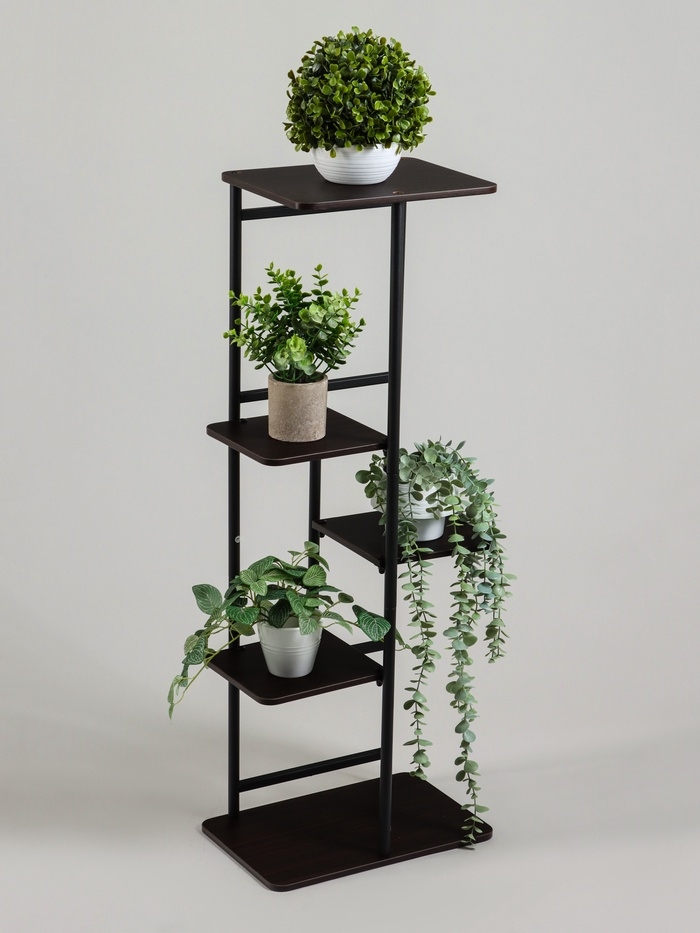 Подставка для цветов Greengo, 5 полок, 36 × 23 × 94 см, напольная, каркас металл, полки МДФ, чёрная