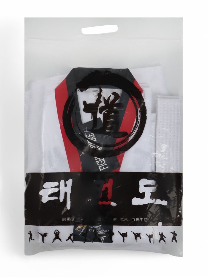 Добок (кимоно) для Тхэквондо, белый, черно-красный ворот, детский, размер 150