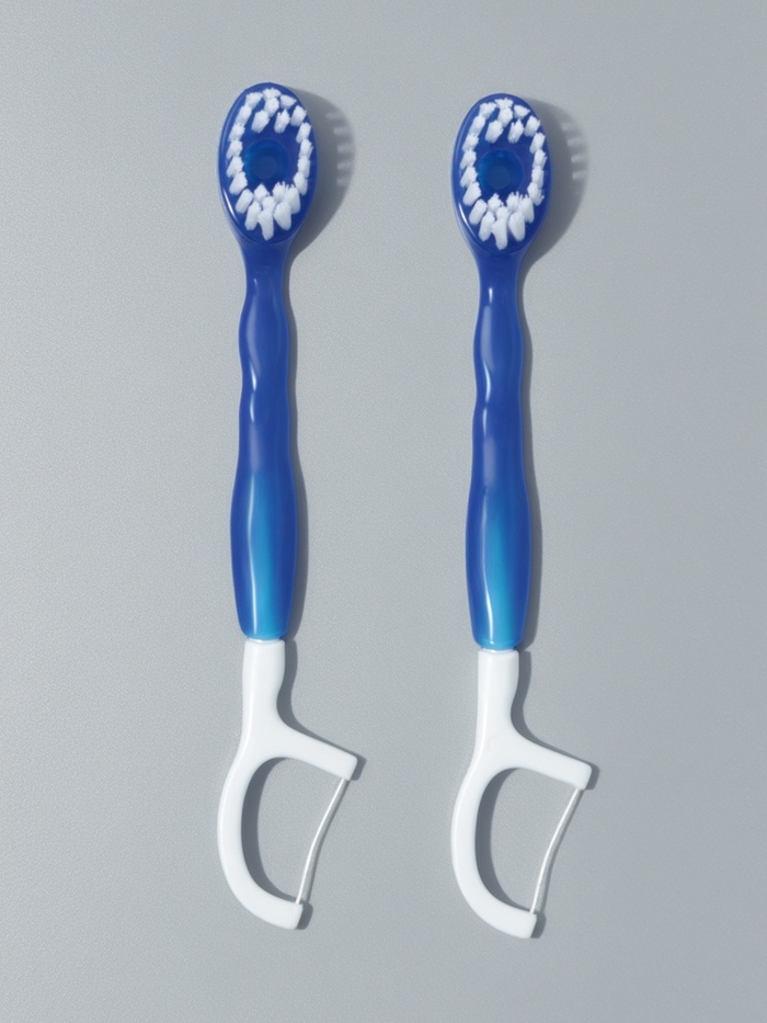 Зубная щетка с зубной нитью 10,5см (наб 2 шт цена за наб) пласт/нейлон синий накл ОТ