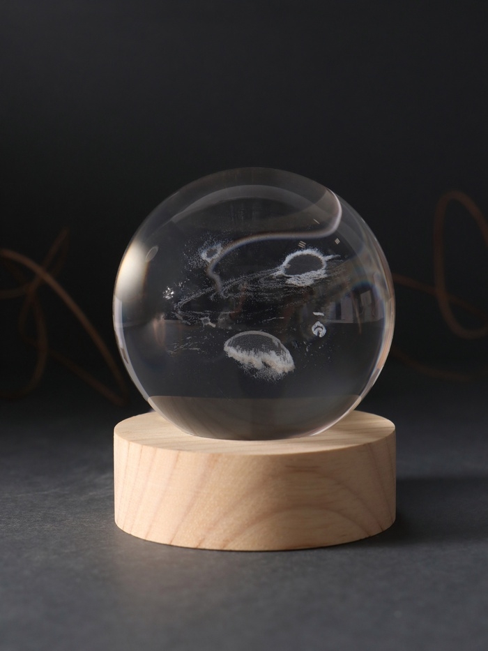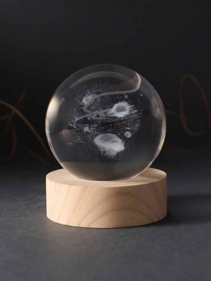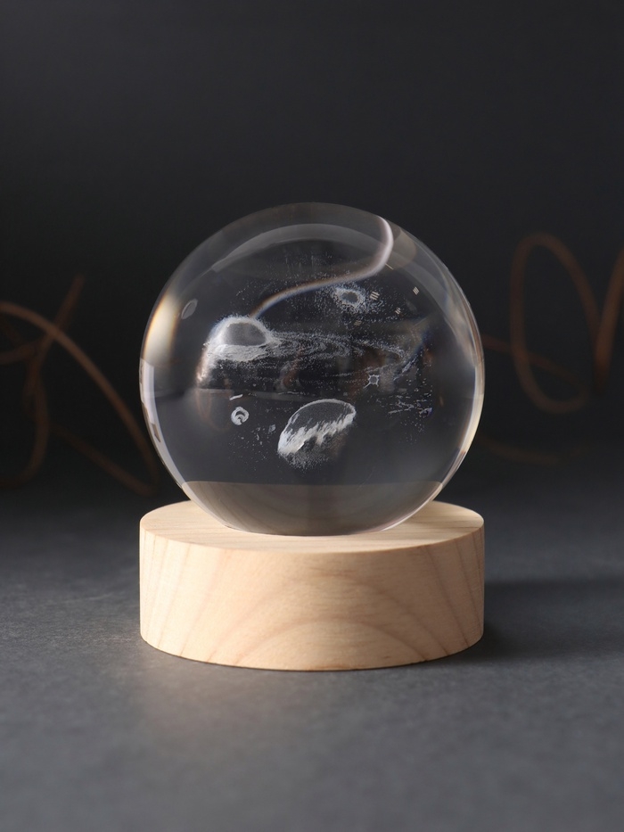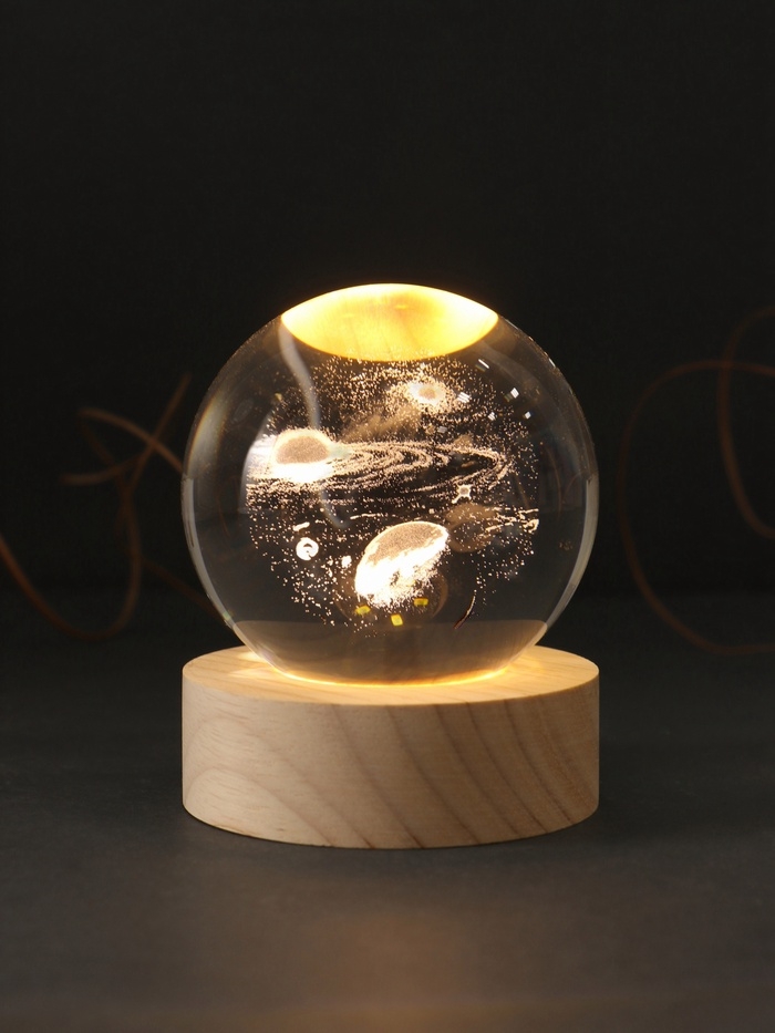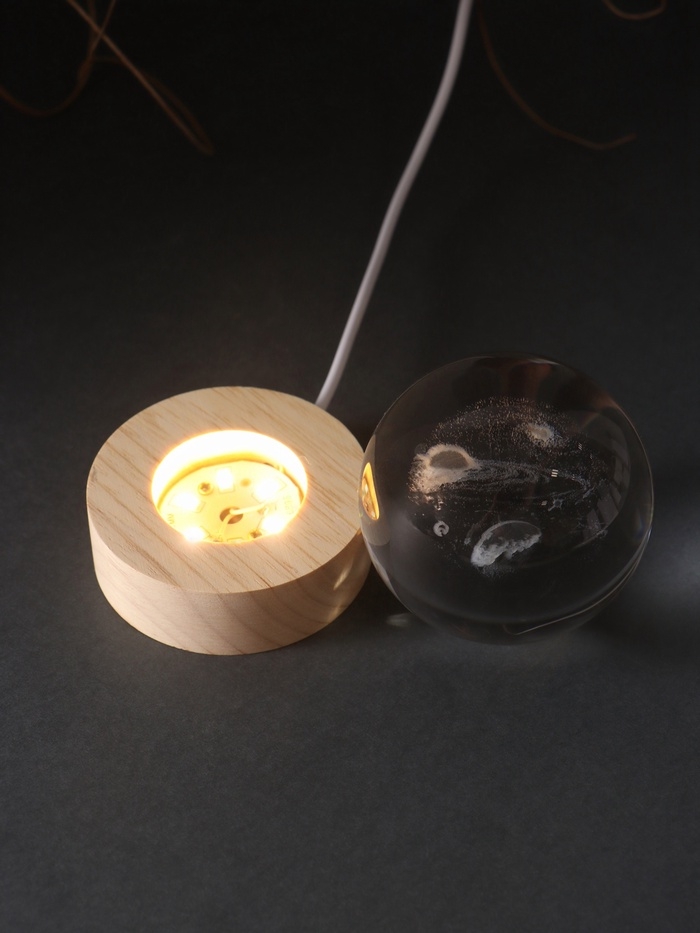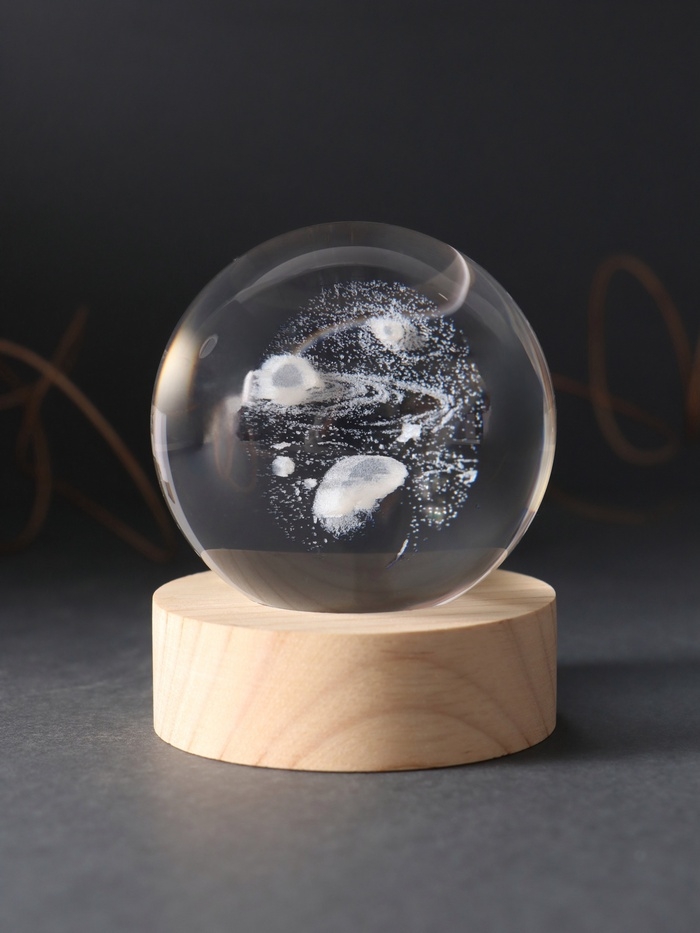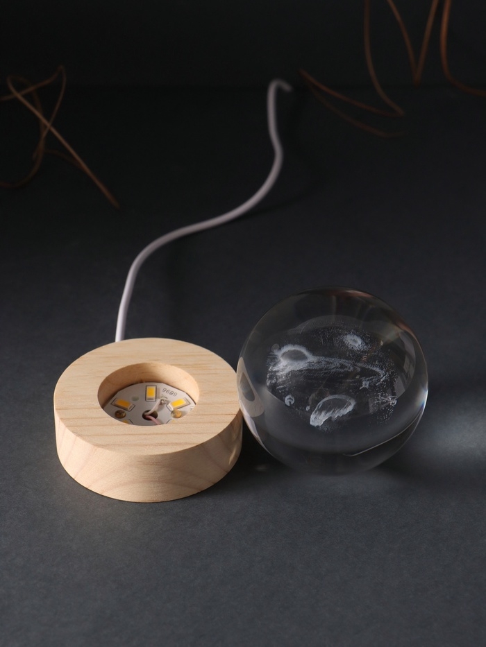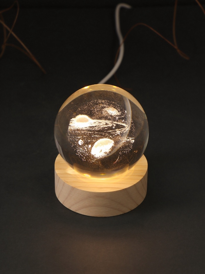 Сувенир стекло подсветка "Шар. Космос" d=6 см подставка дерево, USB