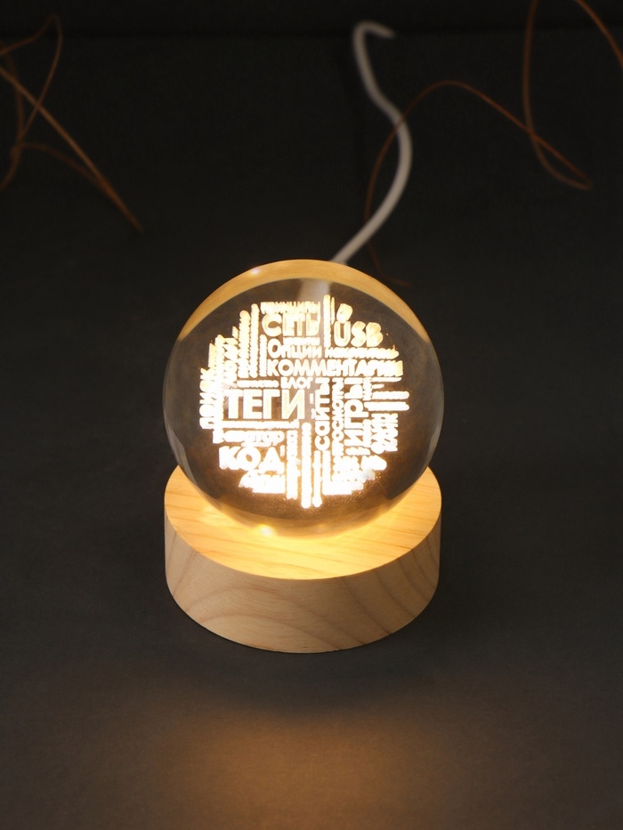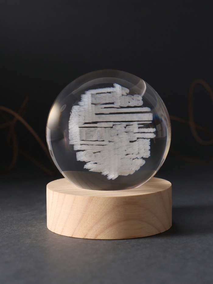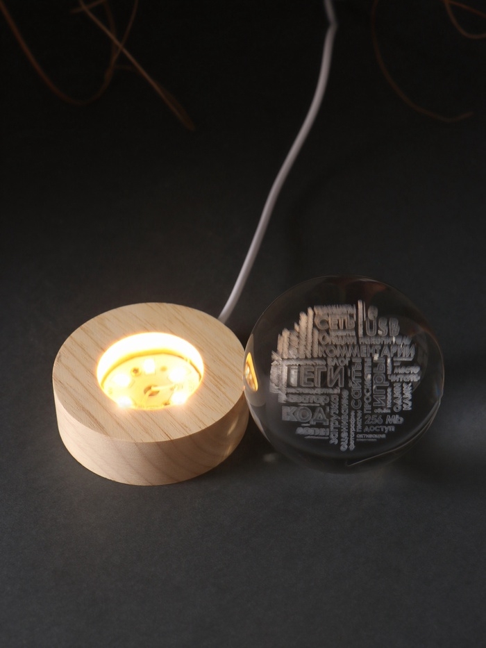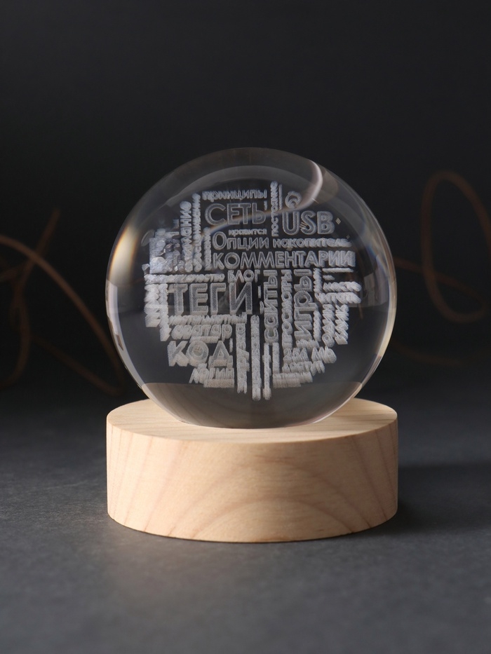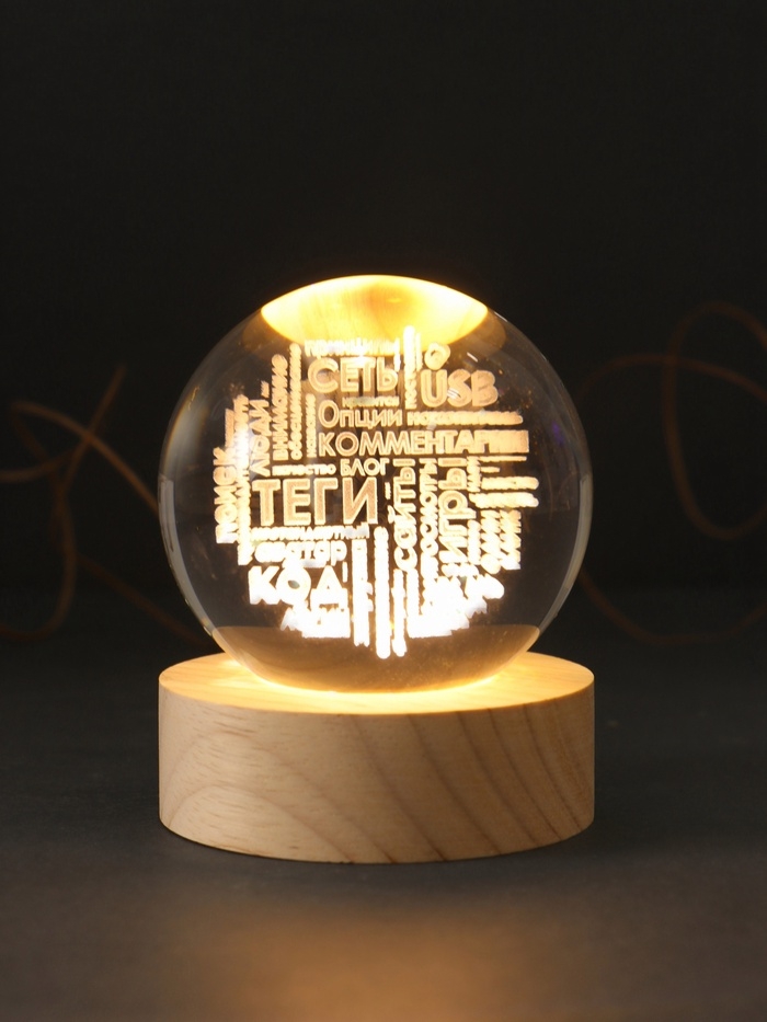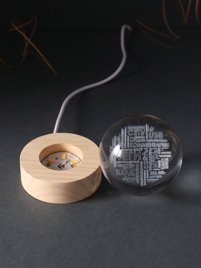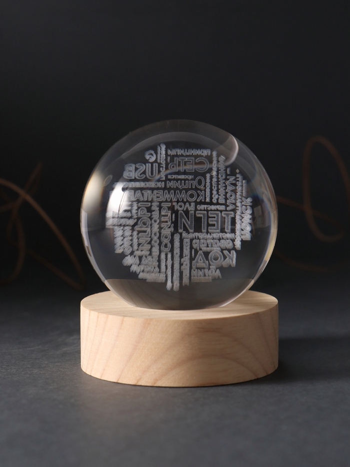 Сувенир стекло подсветка "Шар. Слова" d=6 см подставка дерево, USB