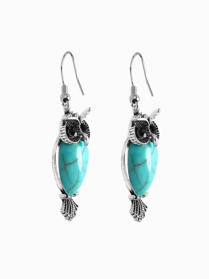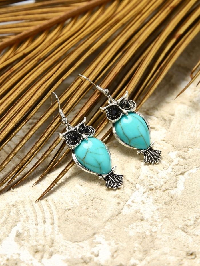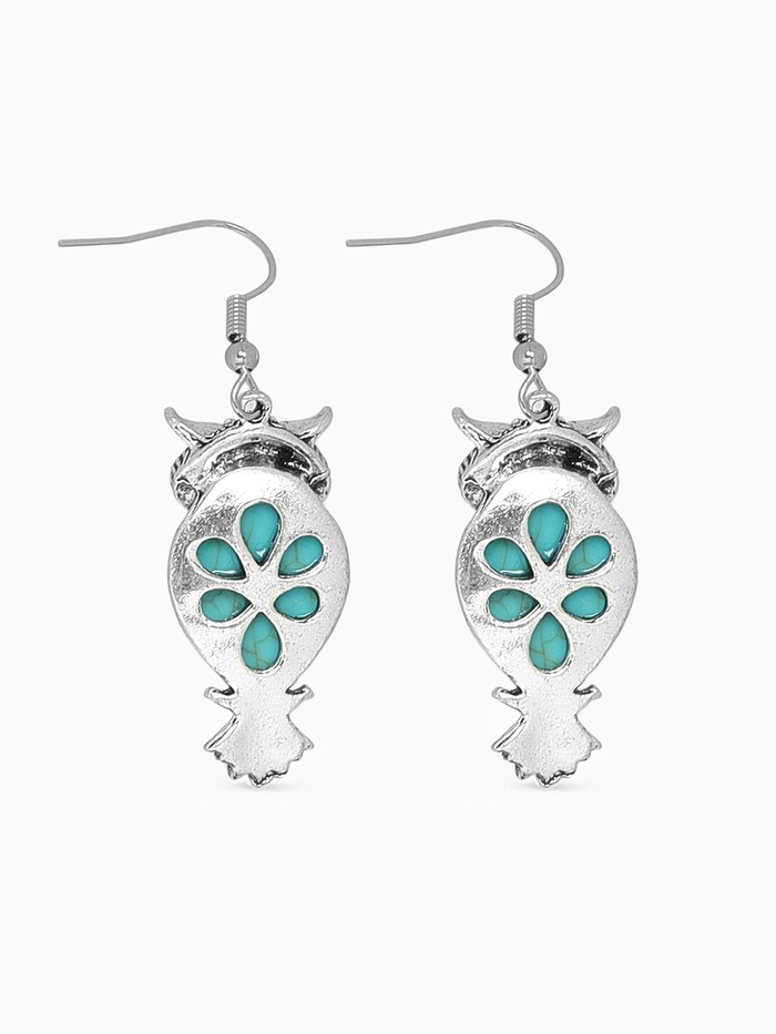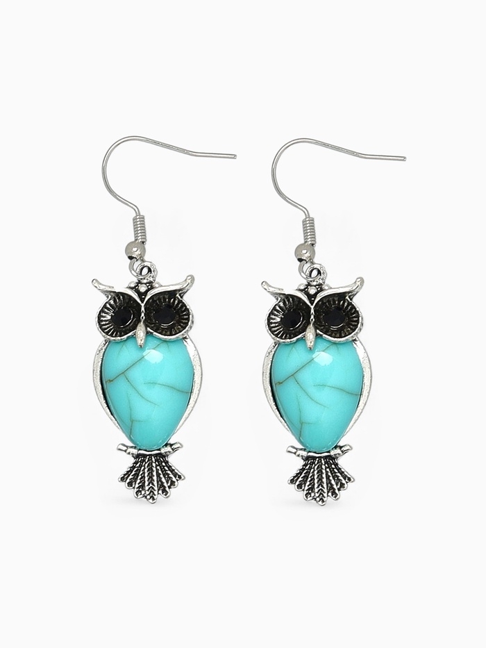 Серьги «Бирюзовый мир» сова, цвет голубой в чернённом серебре