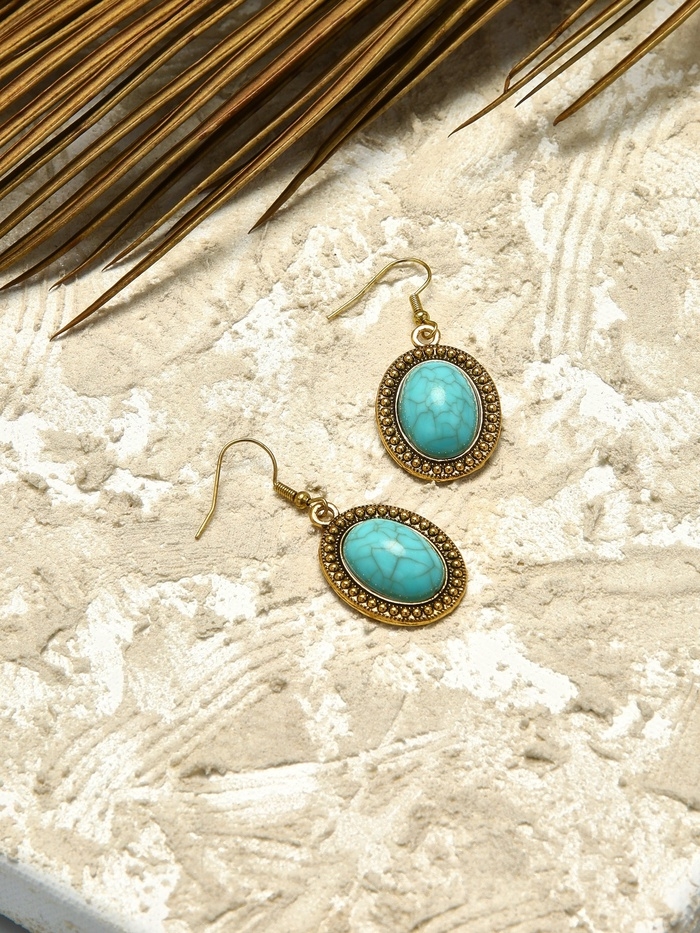 Серьги «Бирюзовый мир» круг, цвет голубой в чернённом серебре