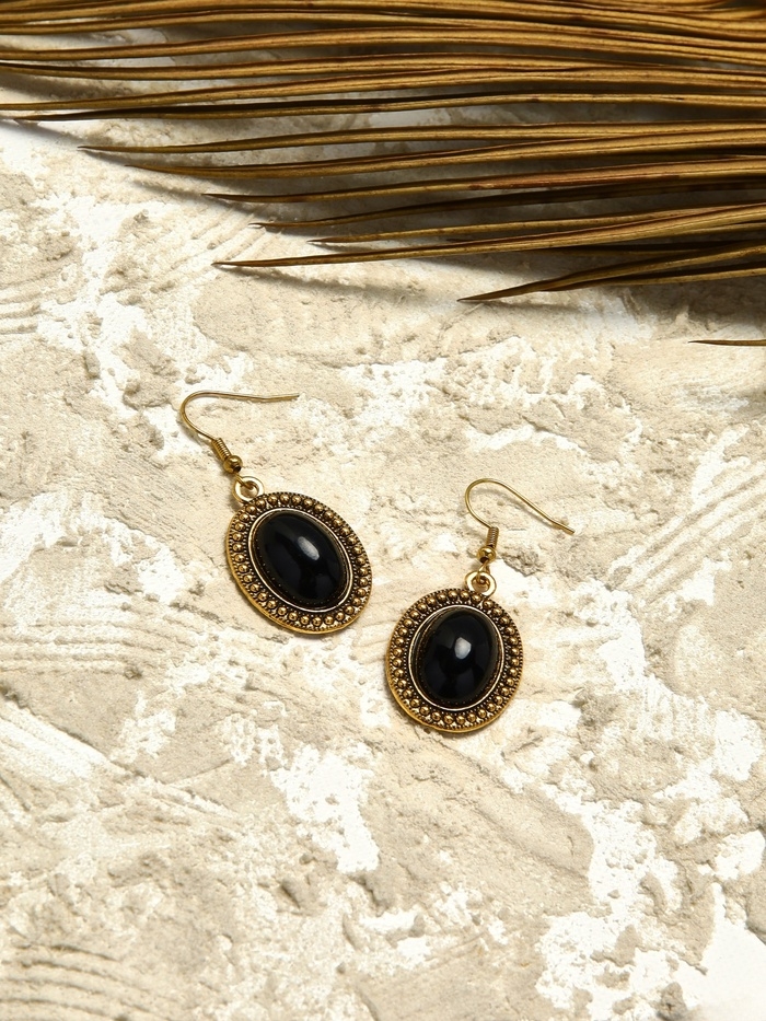 Серьги «Овал» винтаж, цвет чёрный в чернённом золоте