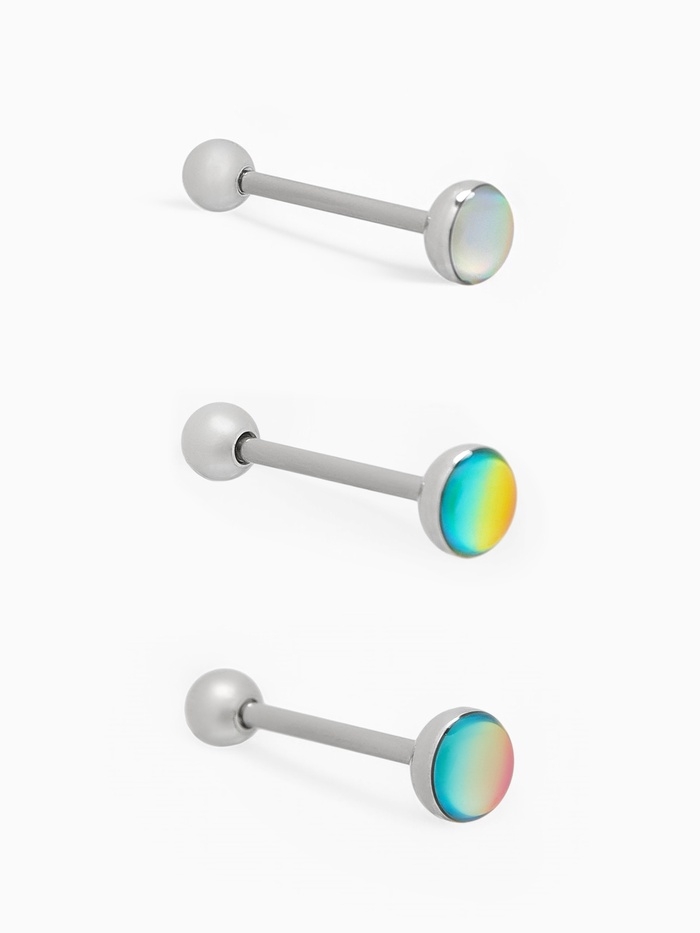 Пирсинг в язык «Штанга» опал, L=2,5 см , цвет МИКС в серебре