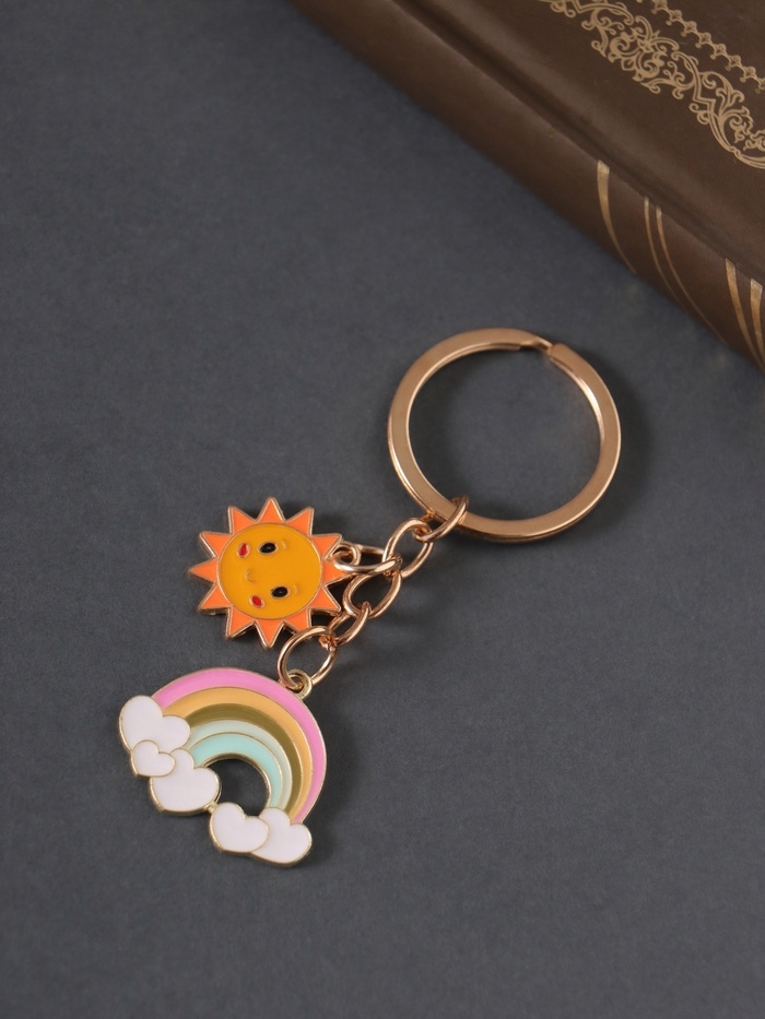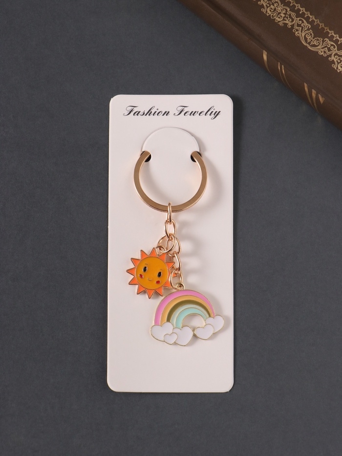 Брелок металл, эмаль "Солнце и радуга" 9 см