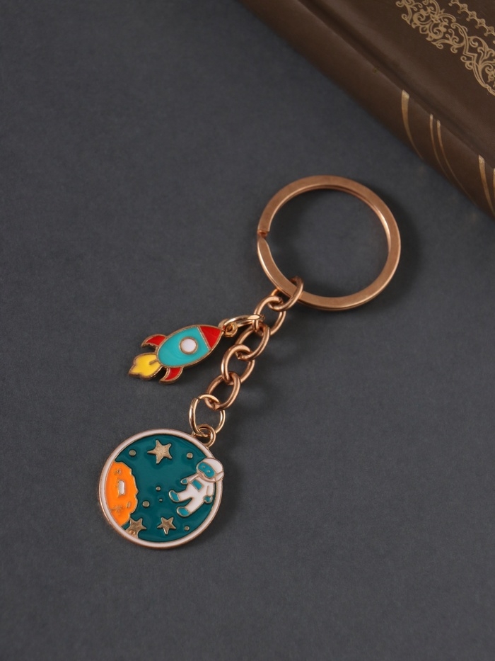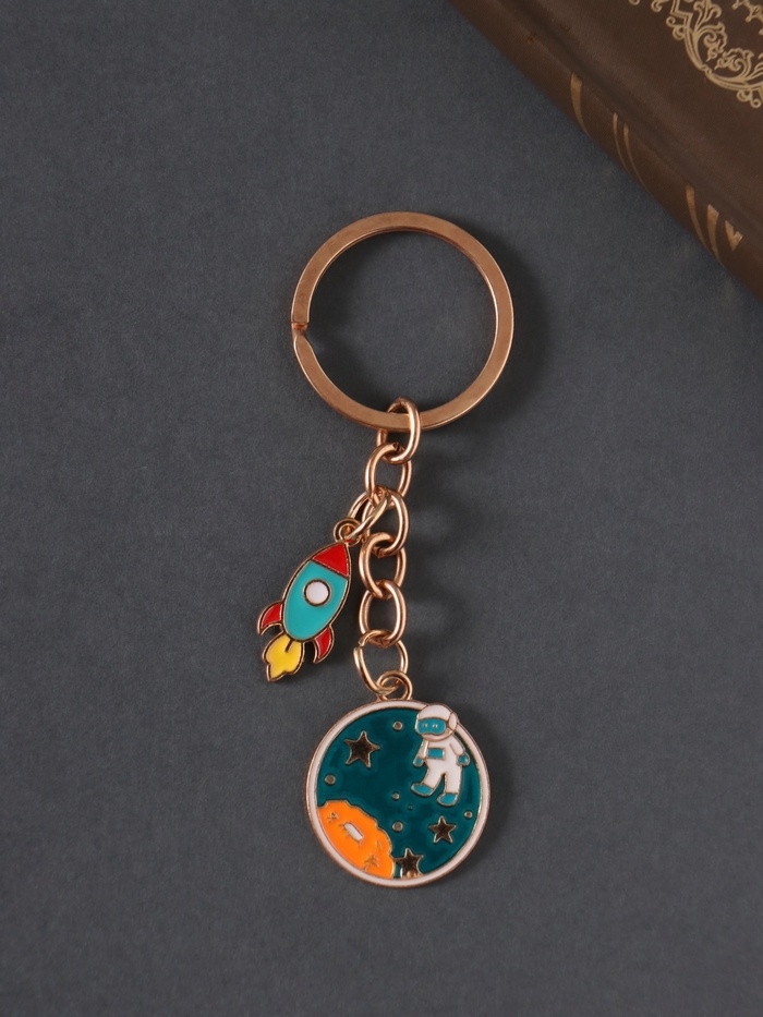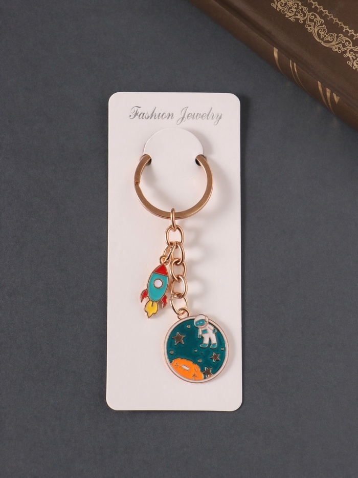 Брелок металл, эмаль "Планета и ракета" 9 см