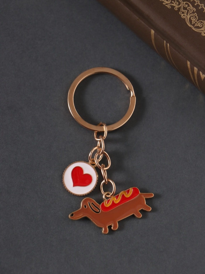 Брелок металл, эмаль "Собачка и сердце" 9 см