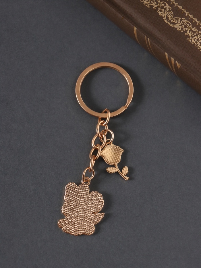 Брелок металл, эмаль "Зайка и цветы" 9 см