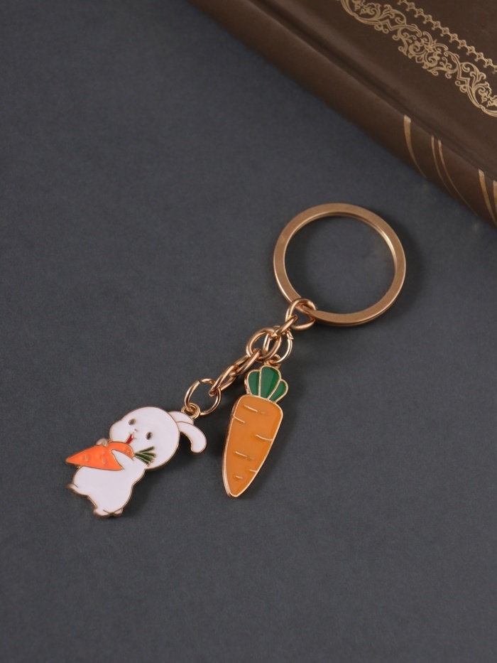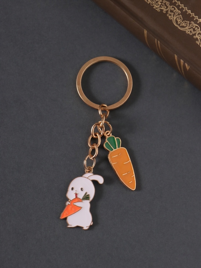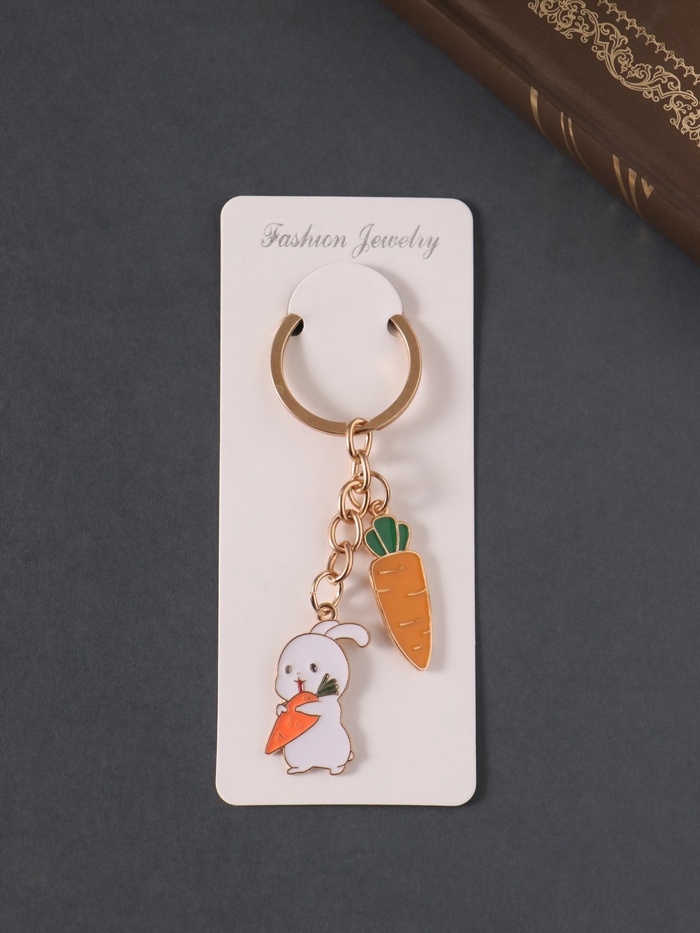 Брелок металл, эмаль "Зайка и морковки" 9 см