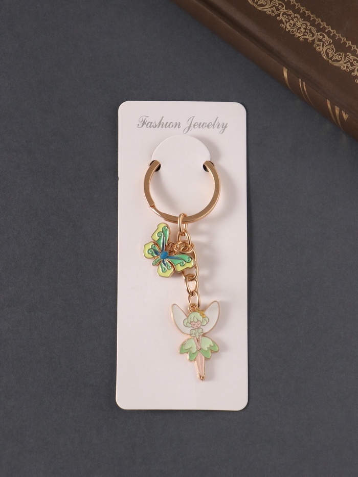 Брелок металл, эмаль "Дюймовочка и бабочка" зелёный 9 см